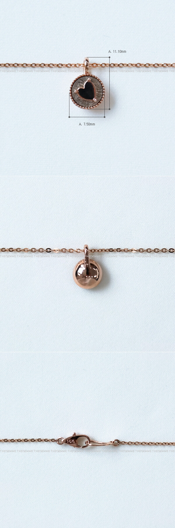 하트 포인트 디자인의 코인 목걸이입니다. 플랫한 코인 중앙에 플랫한 하트 모양 팬던트가 덧대어져 있는데 마치 양각 느낌으로 볼록하게 올라온 디자인이라 작지만 볼드한 느낌이 있어요 :) 그리고 자세히 보시면 코인 바탕 부분만 포인트 골드 색상으로 들어가는 투톤 디자인이구요, 마치 도구로 긁어놓은듯한 앤틱한 표면처리를 통해서 고급스러운 느낌이 물씬 풍기는 유니크한 디자인이랍니다. (원톤으로 원하시는 경우에는 메인 골드 색상과 코인 부분의 포인트 골드 색상을 동일하게 선택해 주시면 됩니다.) 어떤 코디에도 잘 어울리는 사랑스러운 디자인으로 데일리 및 포인트 목걸이로 추천해 드릴게요. 💖