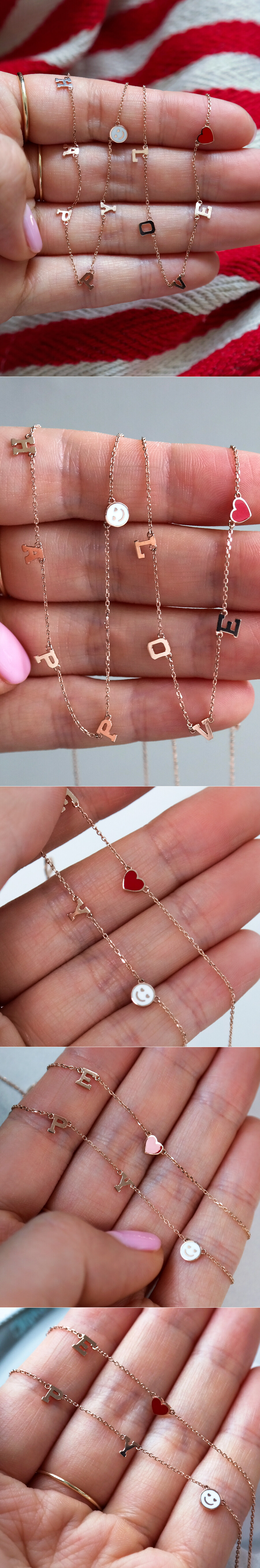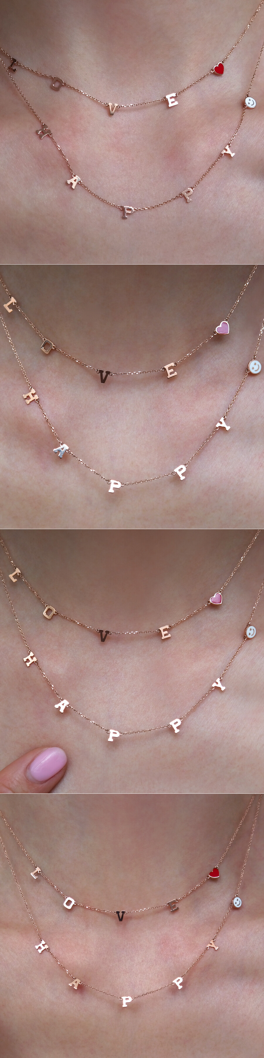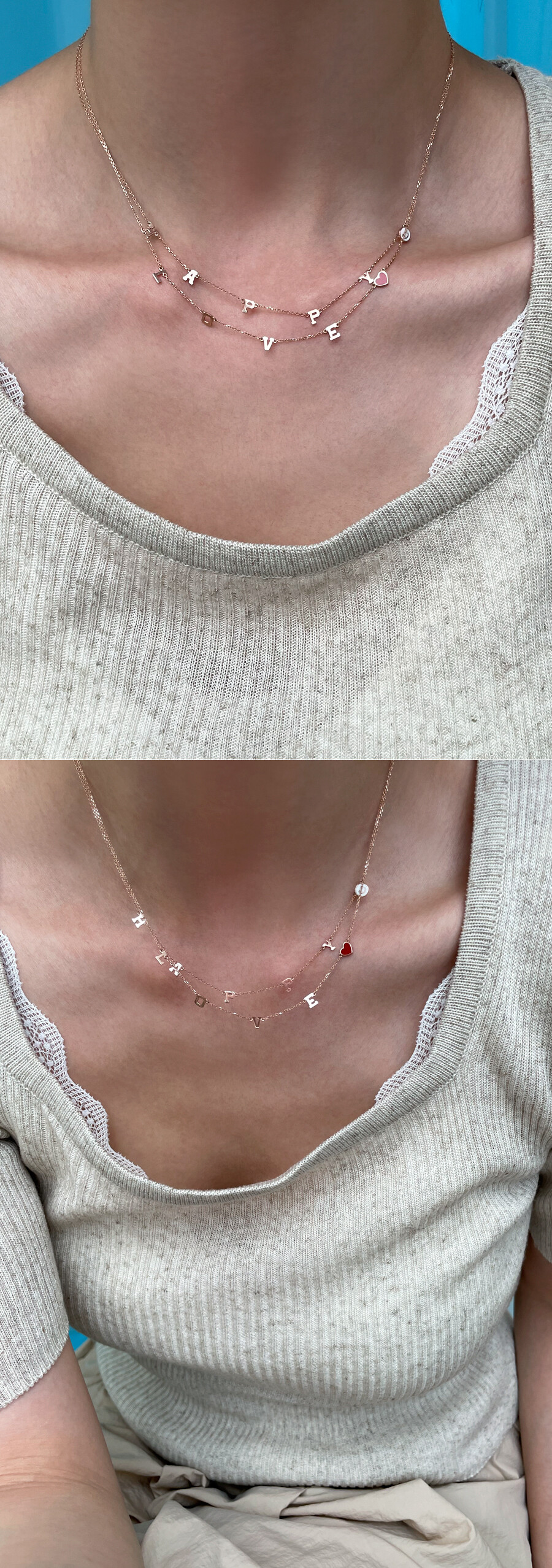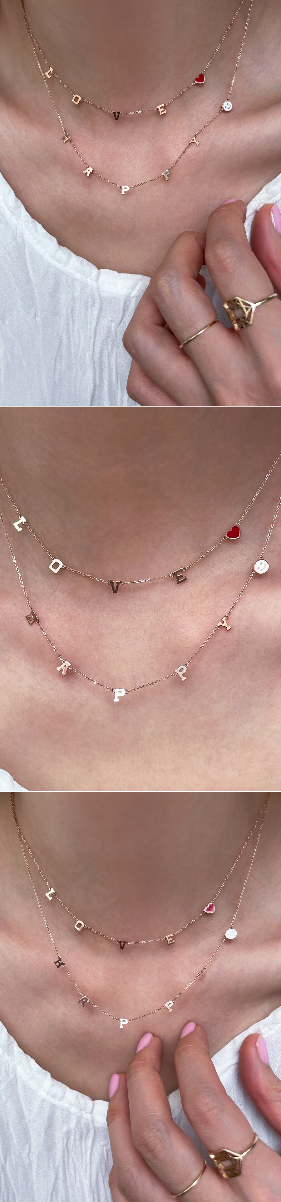 러브 하트 & 해피 스마일 이니셜 목걸이
