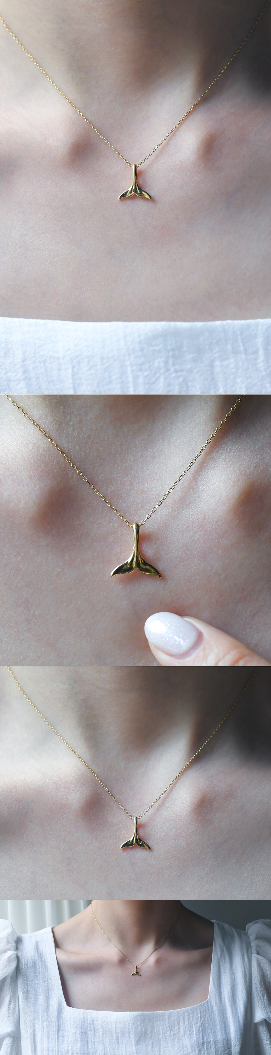 가볍고 미니멀한 사이즈의 고래꼬리 팬던트 초커 목걸이입니다. 가로 지름 약 1CM 크기의 스몰 사이즈 팬던트구요, 팬던트 양면 디자인 동일합니다. 체인은 약 2푼 굵기의 각줄로 착용 이미지의 길이는 약 40CM로 촬영되었어요. (모델 목둘레가 약 32~33CM로 너무 얇아서 기본 사이즈처럼 보이지만 초커 스타일입니다.) 어디에나 잘 어울리는 디자인으로 여리여리한 느낌의 데일리 목걸이를 찾으시는 분들께 추천해 드릴게요! ♥