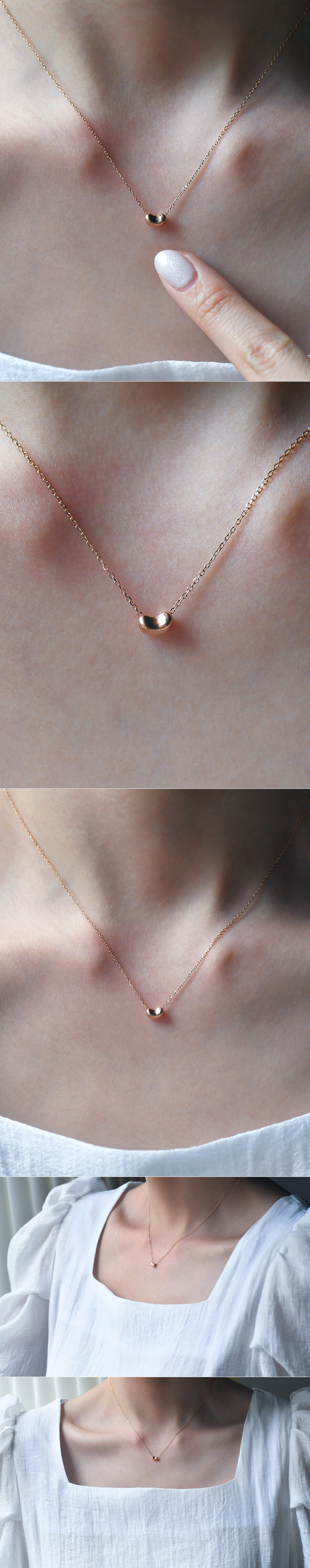 가볍고 미니멀한 사이즈의 캔디 모양 초커 목걸이입니다. 가로 지름 약 6mm 크기의 미니 사이즈 팬던트구요, 볼륨감 있는 모양의 귀여운 디자인입니다 :) 체인은 약 2푼 굵기의 각줄로 착용 이미지의 길이는 약 40CM로 촬영되었어요. (모델 목둘레가 약 32~33CM로 너무 얇아서 기본 사이즈처럼 보이지만 초커 스타일입니다.) 어디에나 잘 어울리는 둥글둥글한 디자인으로 여리여리한 느낌의 데일리 목걸이를 찾으시는 분들께 추천해 드릴게요! ♥
