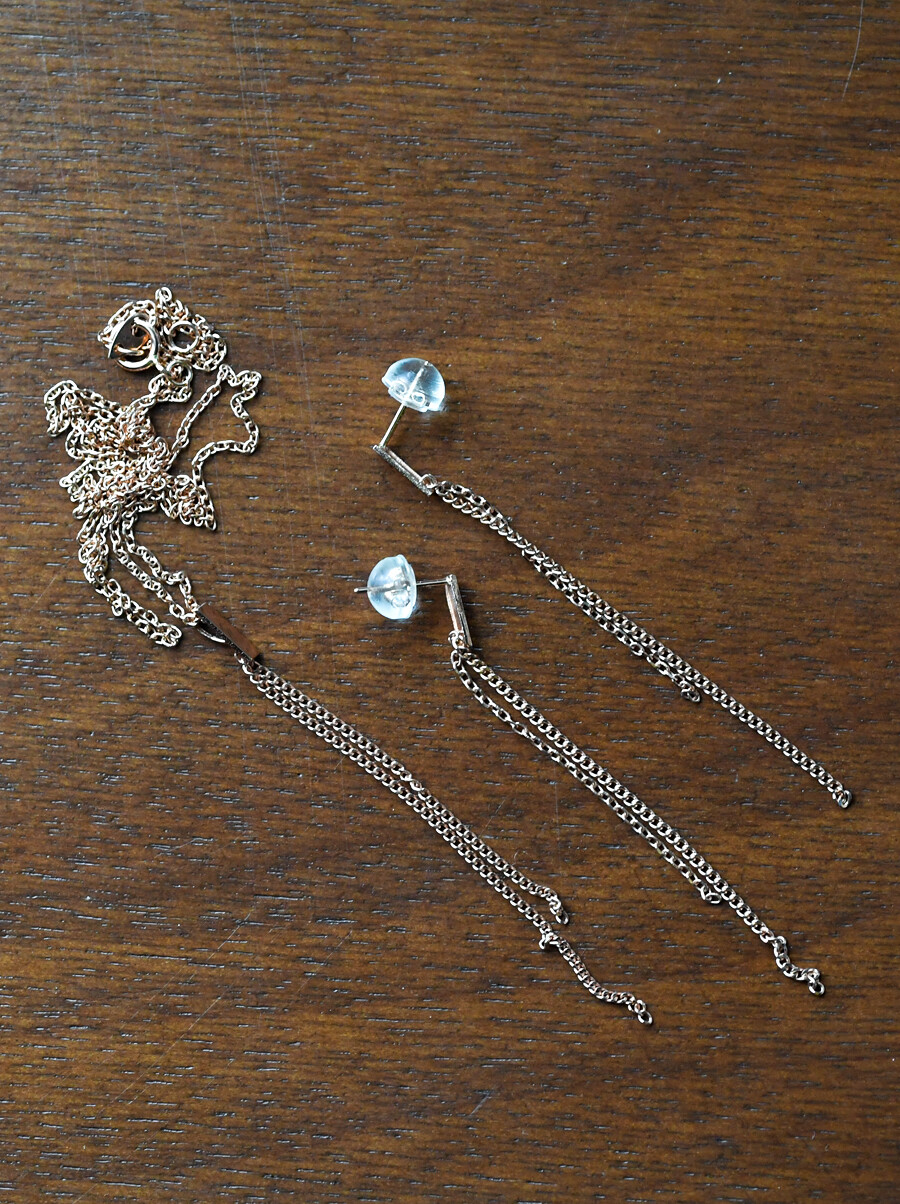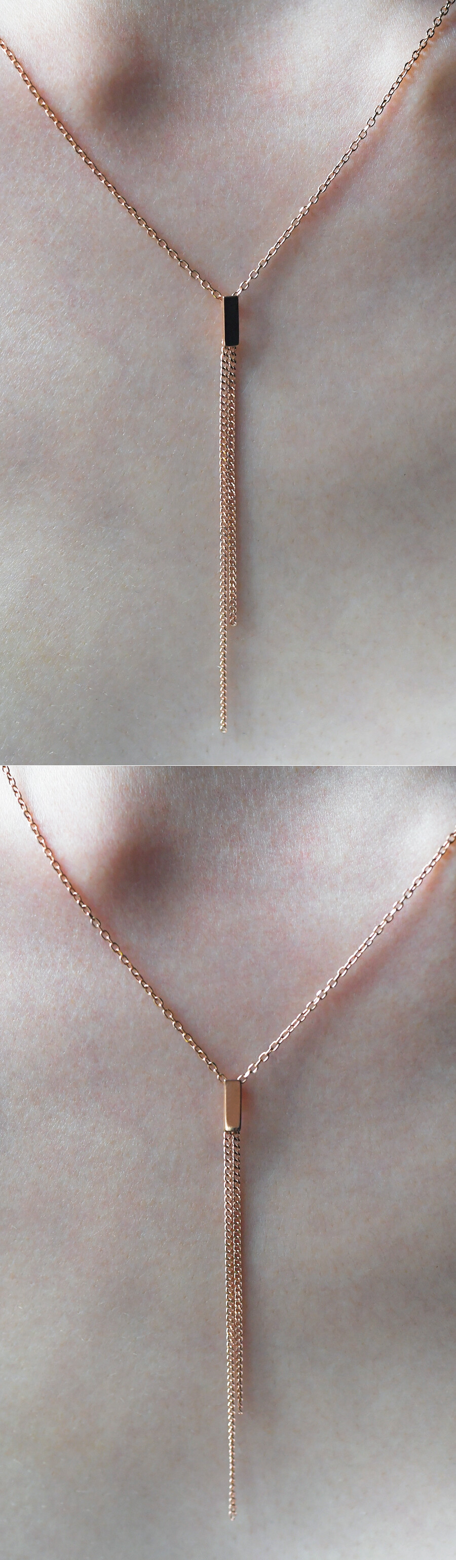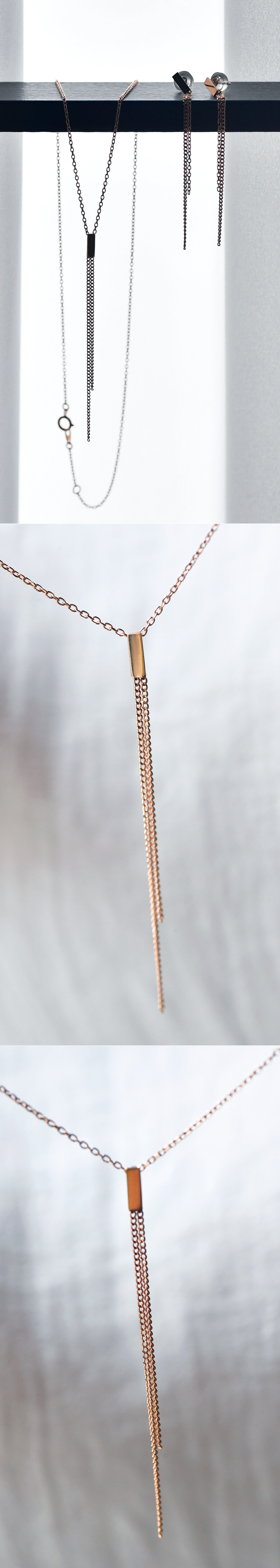 미니미한 사이즈의 태슬 목걸이입니다. 작은 미니바 장식에 각각 다른 모양과 다른 길이를 가진 두 개의 체인이 하늘하늘한 느낌으로 달려있어요. 자연스럽고 세련된 태슬 디자인의 체인 장식으로 여리여리한 느낌의 포인트 목걸이로 추천해 드려요! ♥