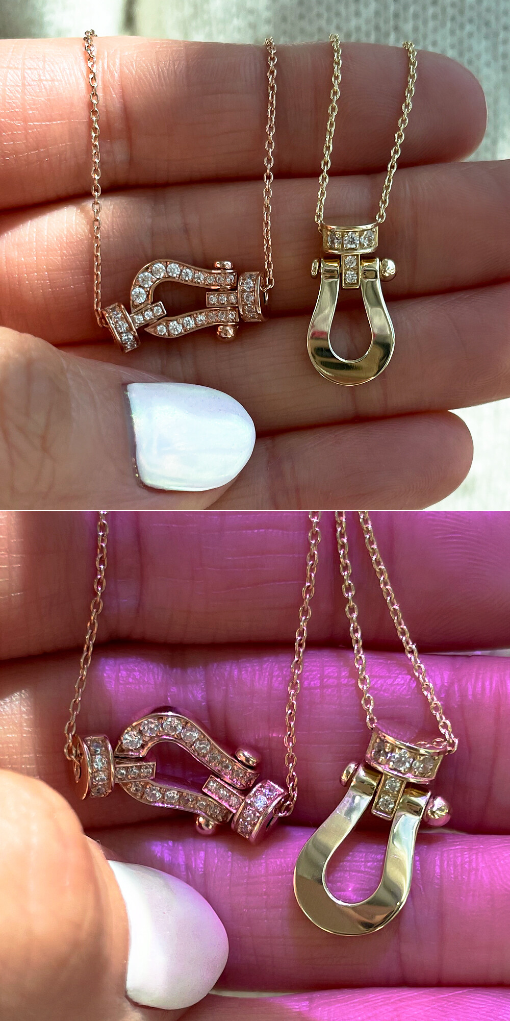 섬세한 디테일을 자랑하는 볼드한 말발굽 디자인의 목걸이입니다 ^^ 🧡 세로 스타일과 가로 스타일로 나뉘는데 이 페이지는 가로 스타일 구매 페이지입니다! 원 사이즈 목걸이로 40CM부터 45CM까지 자유롭게 착용이 가능한 아이랍니다! 팬던트가 볼드한 스타일로 14K 기준 중량은 약 한 돈 반이 조금 넘습니다. 중량감이 있어서 안정감이 있게 착용하시기 좋아요. 자세한 디테일은 사진과 영상에서 확인해 주시면 되구요, 세련되고 유니크한 디자인의 목걸이로 데일리 목걸이나 포인트 목걸이를 찾으시는 분들께 추천해 드릴게요! 👍🏼