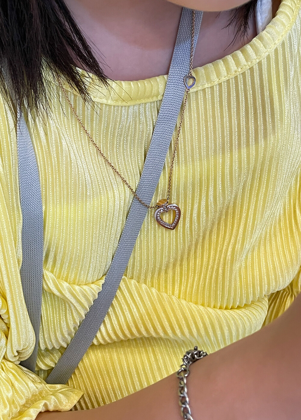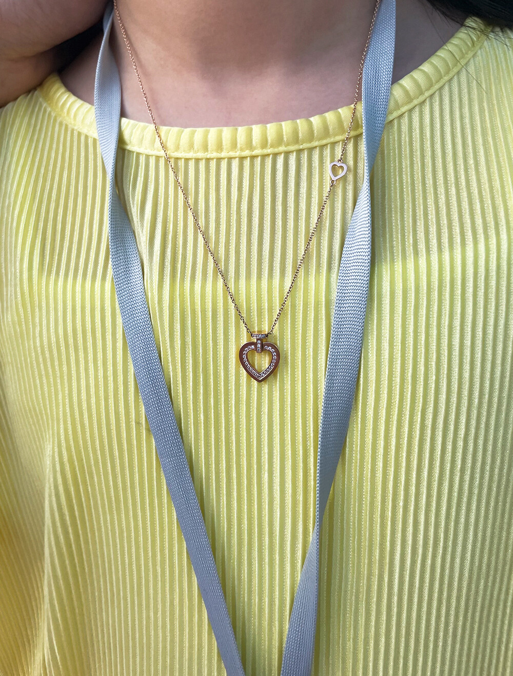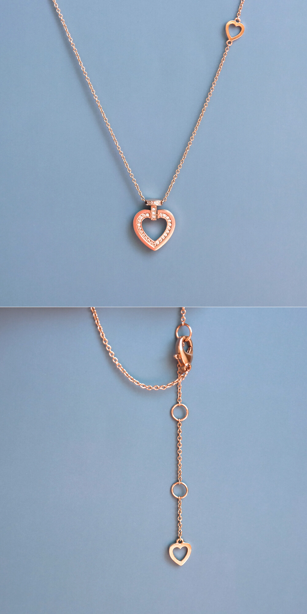 체인 사이드 부분과 잠금 장식 부분에 미니 하트 장식이 있어요 :)