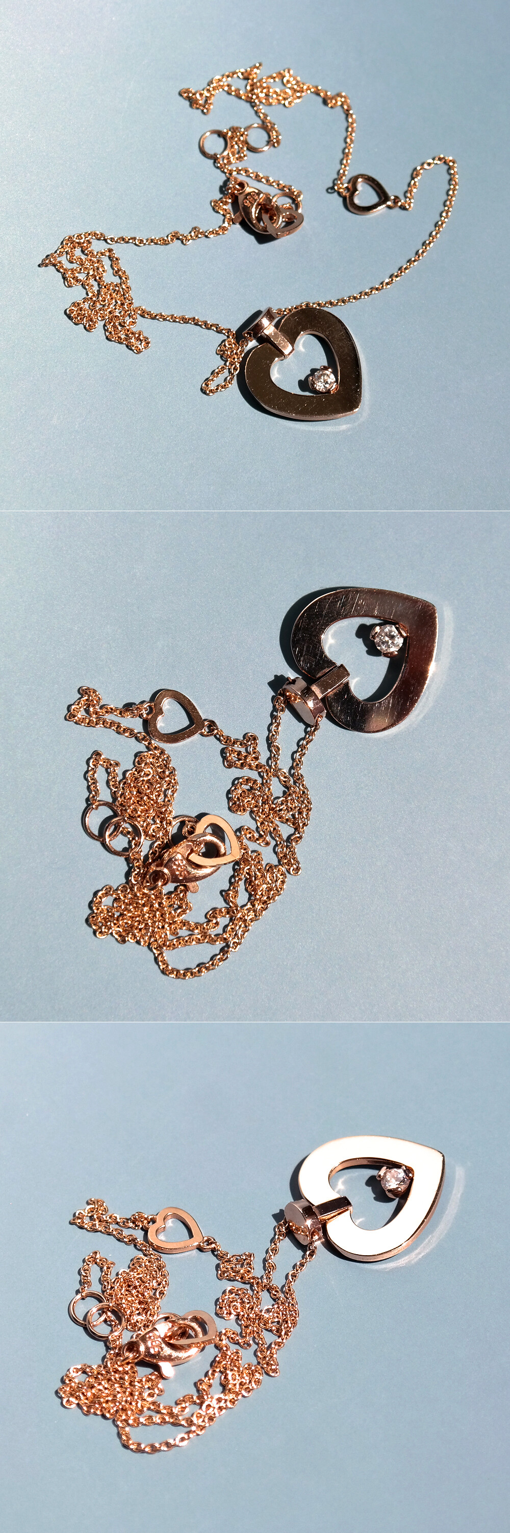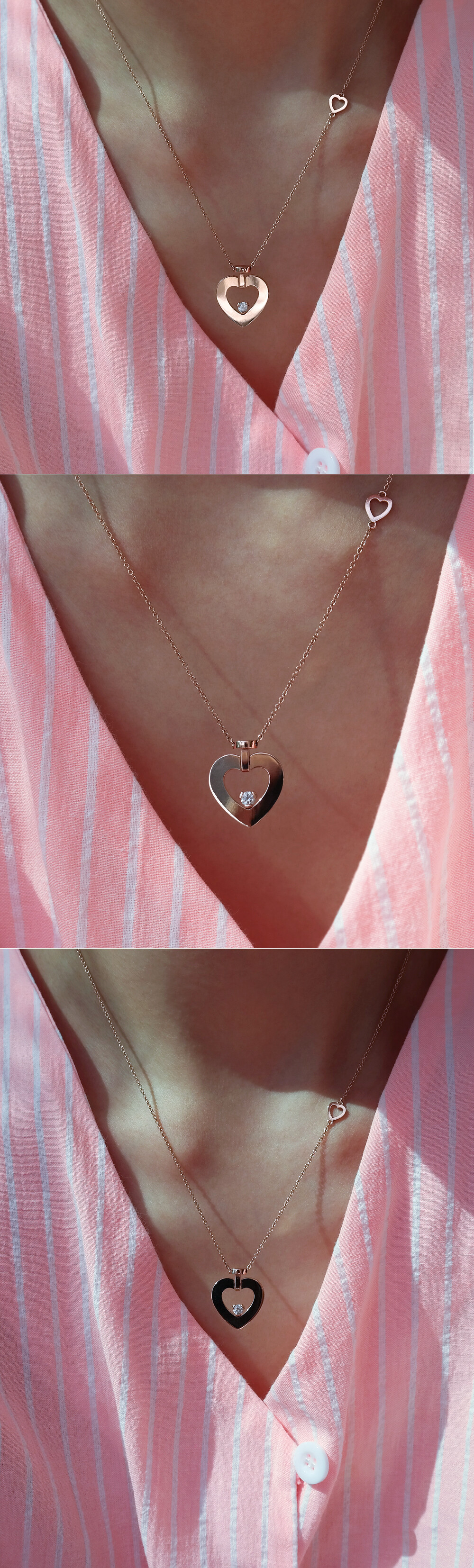 체인 사이드 부분과 잠금 장식 부분에 미니 하트 장식이 있어요 :)