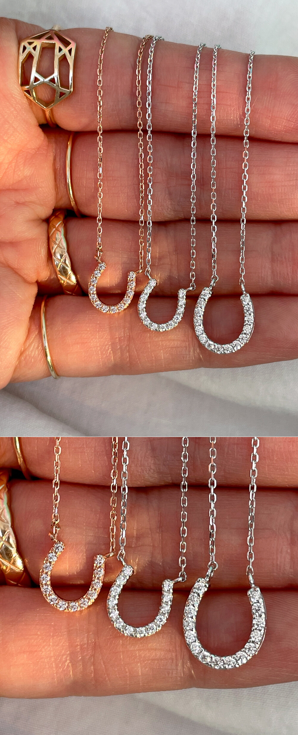 미니멀한 사이즈의 말발굽 모티브 목걸이입니다. 🐎🐴🧲 작지만 섬세한 디테일로 고급스러움이 한껏 돋보이는 정교한 디자인이에요. 👍🏼 사이즈는 (소) 사이즈와 (대) 사이즈로 두 종류입니다. 모티브 메인 전체 큐빅 세팅으로 반짝반짝~ 빛나는 아이랍니다. ✨ 요 아이는 예물 전문 공장에서 나오는 아이로 퀄리티가 남다른 아이에요 ... ㅎ 자세한 디테일은 하단의 상세 페이지에서 안내해 드릴게요. 😉 매일매일 착용하시기 좋은 고급스러운 데일리 목걸이로 강추해 드립니다! 🙌🏼