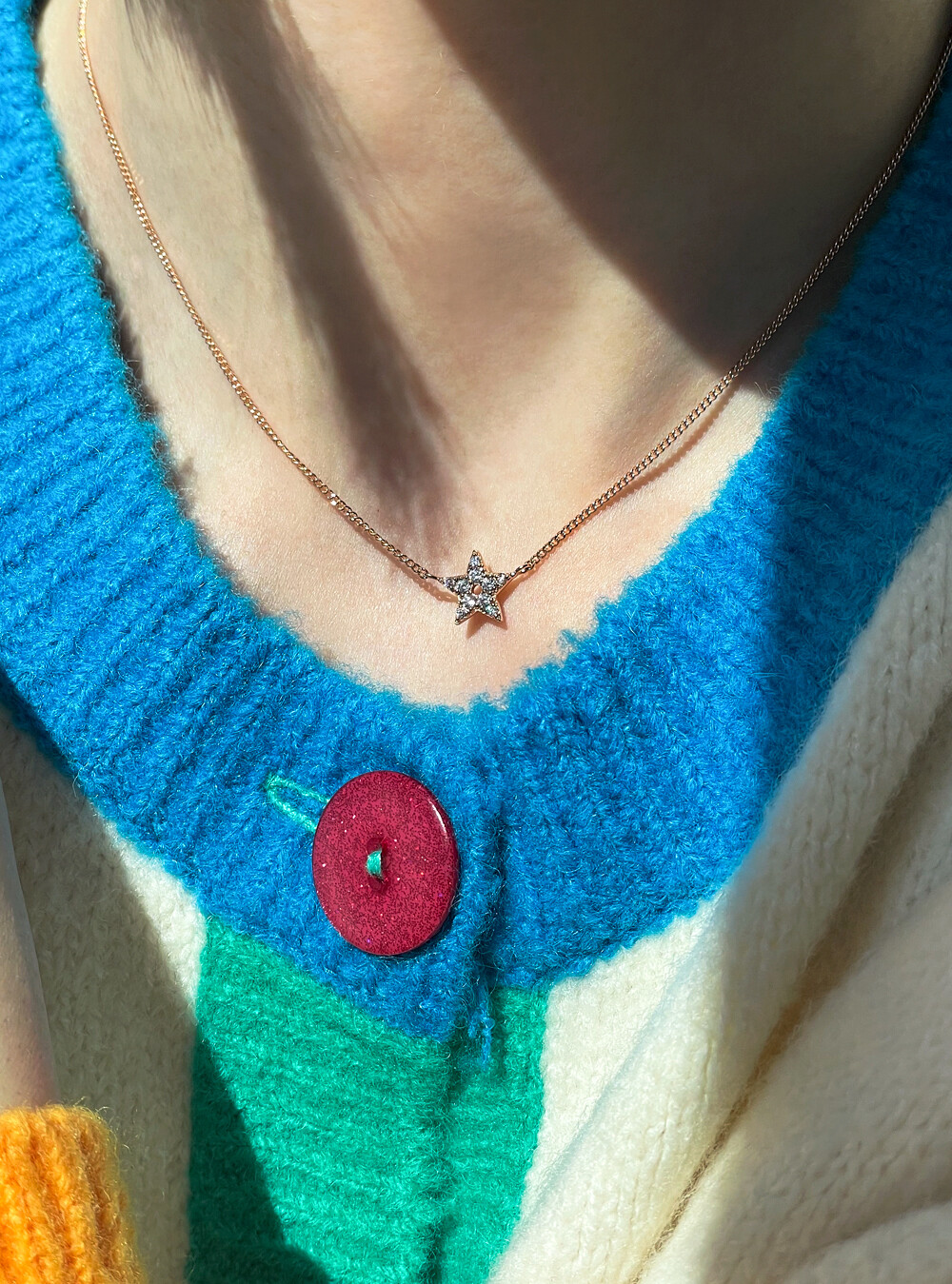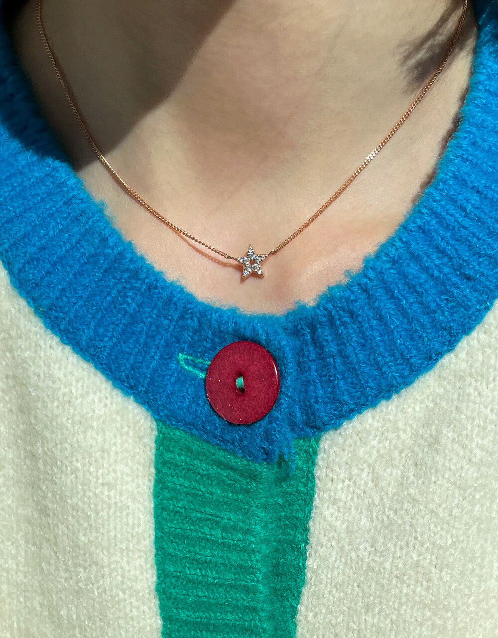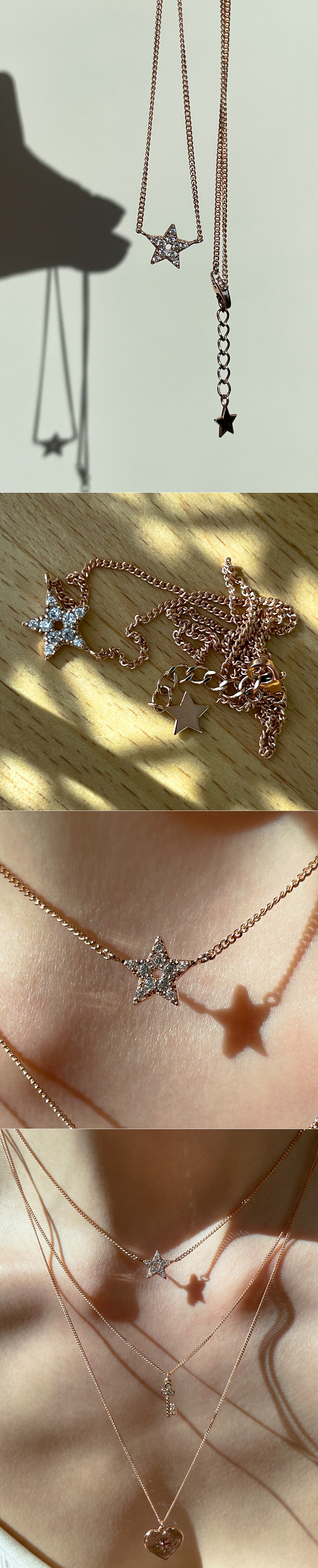팅클팅클, ✨반짝이는 별 모양 팬던트의 귀엽고 사랑스러운 초커 목걸이입니다. ⭐️ 중량감이 있는 볼드한 스타일의 목걸이로, 기본 체인 약 5푼 굵기의 민줄입니다. 촬영된 이미지는 36CM길이로 촬영되었으니 참고해주시구요, (★모델 목둘레 약 32~33CM) 튼튼한 아이라 데일리용 목걸이로 활용하시기 좋아요. 🤩💖