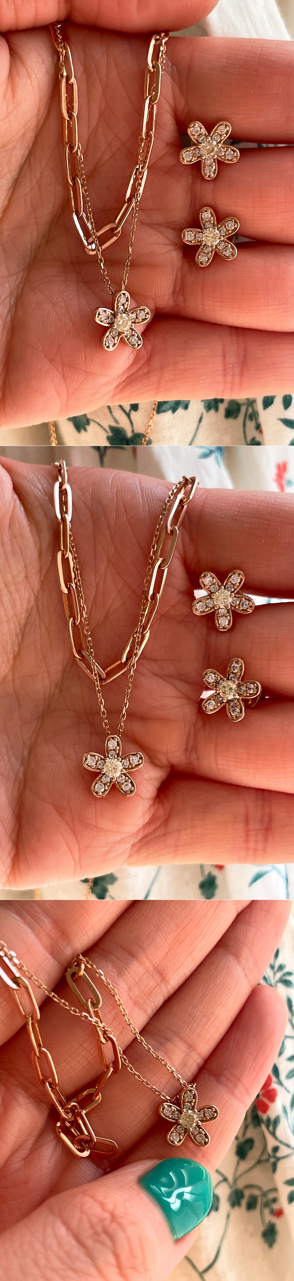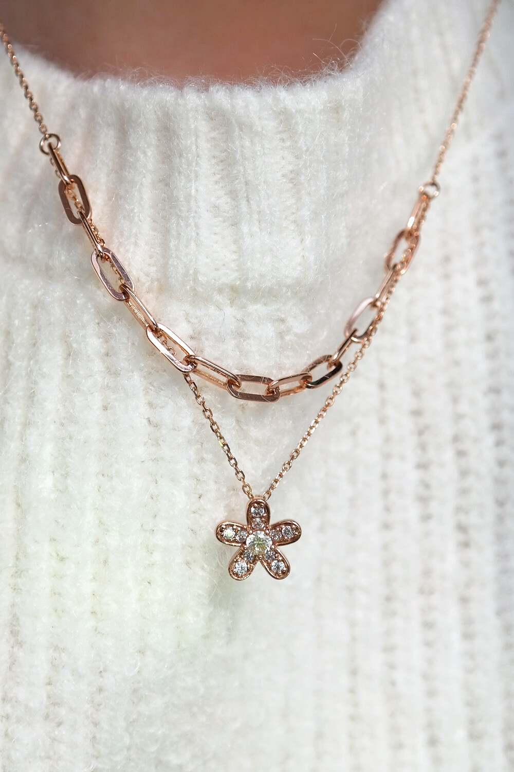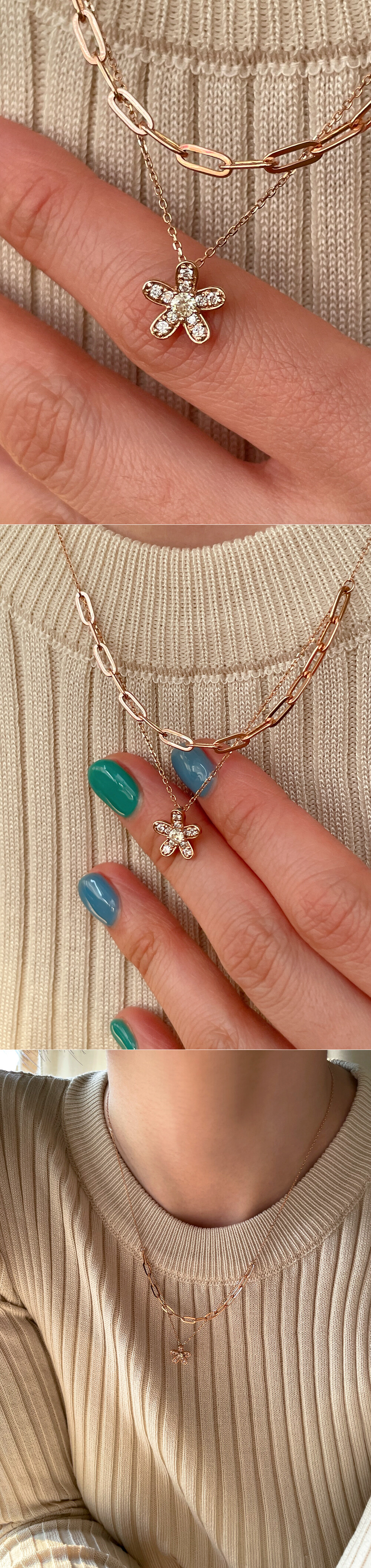 사랑스러운 플라워 장식의 목걸이입니다. 🌼💛 중앙 장식에 믹스 체인 디자인 포인트를 더해 유니크한 느낌을 살린 목걸입니다. 전체적으로 볼륨감이 있으면서 디테일한 디자인으로 고급스러운 느낌이 가득한 아이에요. 팬던트 장식은 전체 큐빅이 세팅된 디자인이구요, 플라워 중앙에 세팅된 밝은 옐로우 빛깔의 스톤은 라이트 옐로우 큐빅입니다. (옵션에서 전체 화이트(투명) 큐빅으로 변경 가능합니다.) 사랑스럽고 고급스러운 디자인의 목걸이를 찾으시는 분들께 포인트 목걸이로 추천해 드릴게요. 😉💖