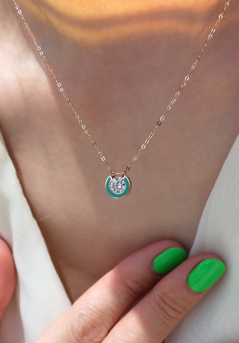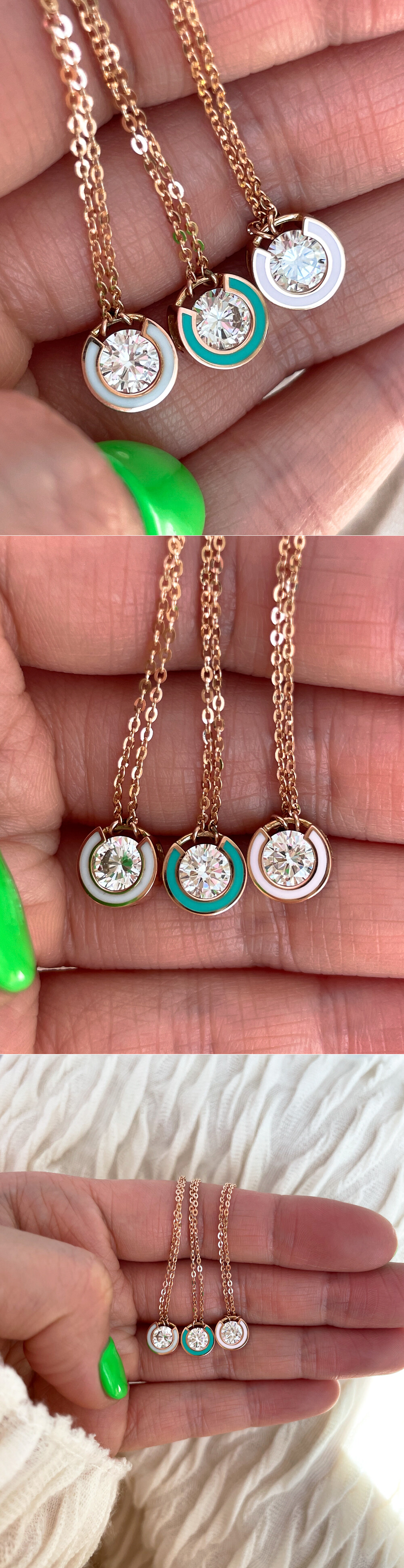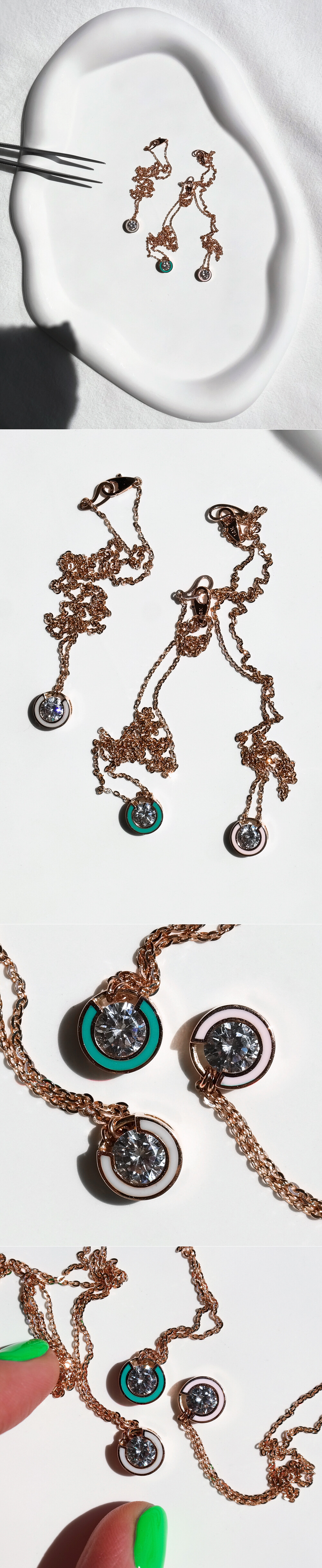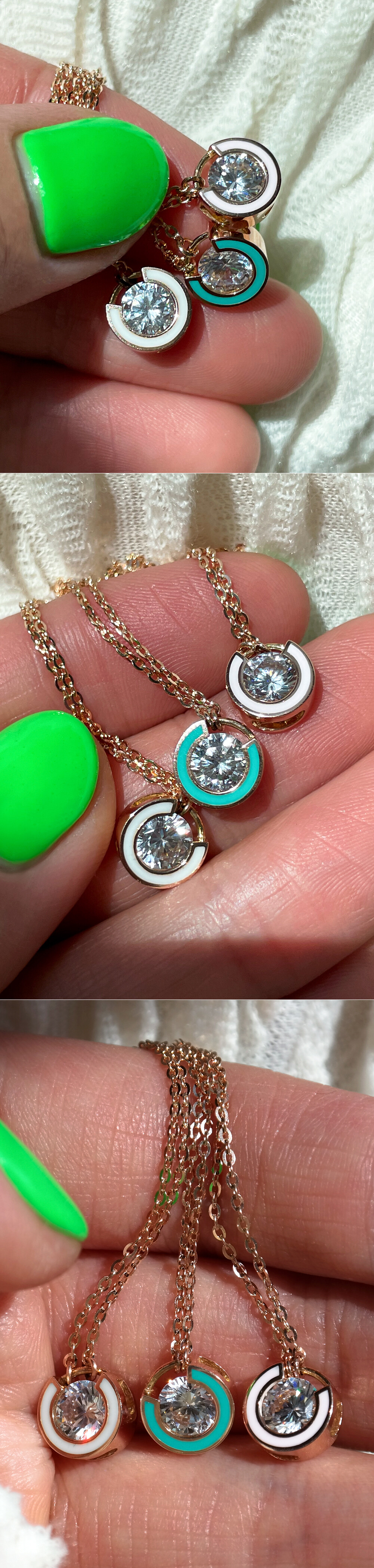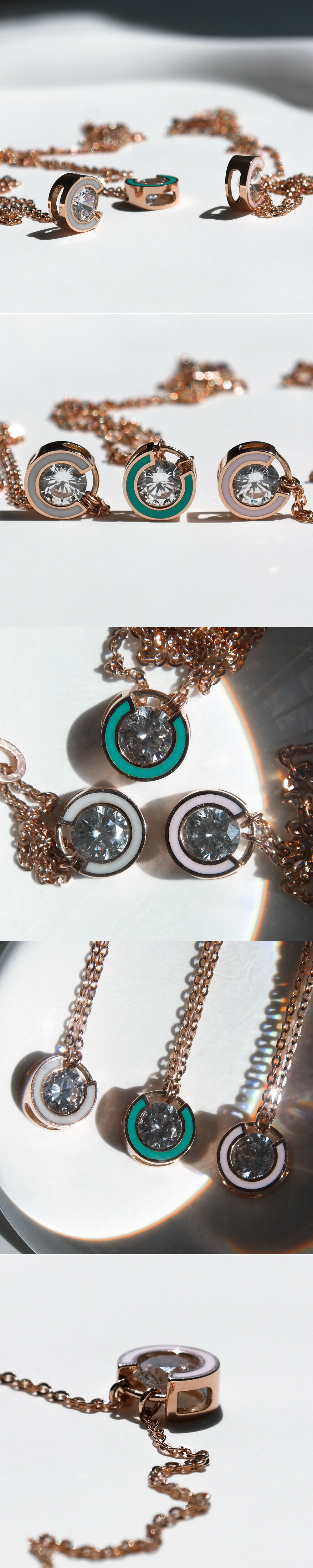 유니크한 라운드 팬던트 장식의 큐빅 목걸이입니다. 😛 어떠한 코디에도 잘 어울리는 원형 디자인으로, 여기저기 다양하게 코디하기시 좋아요. 팬던트 베즐 부분에 보이는 컬러는 ; 골드의 표면에 얇게 컬러 에폭시 처리를 한 것입니다. 이 점 참고해 주시구요, 어여쁜 파스텔톤 컬러라 전체적으로 사랑스러운 느낌이 있어요. 팬던트 안쪽에는 깔끔하고 시크릿 한 매력으로 큐빅이 세팅되어 있어요. 무난한 것 같지만 아기자기한 디테일에 보면 볼수록 눈길이 가는 아이랍니다 :) 데일리 및 포인트 목걸이를 찾으시는 분들에게 추천해 드릴게요. 🤍🩷🩵