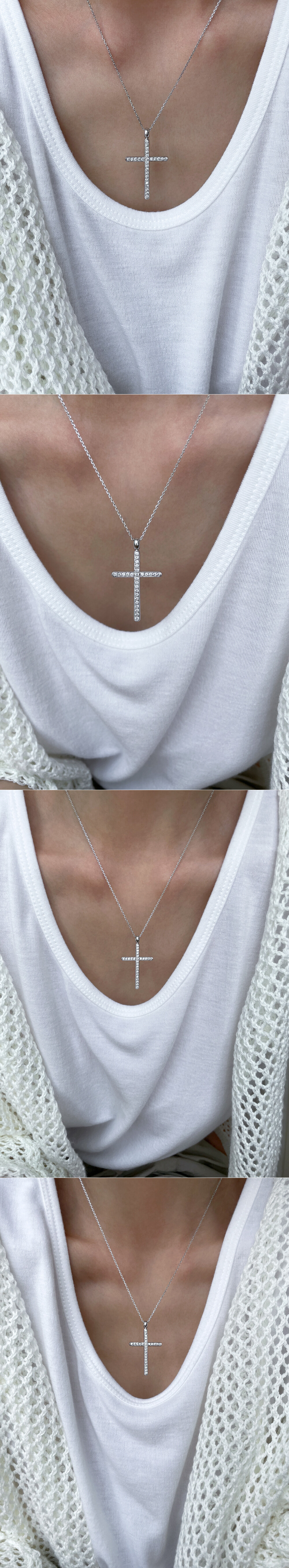 빅 십자가 큐빅 롱 목걸이