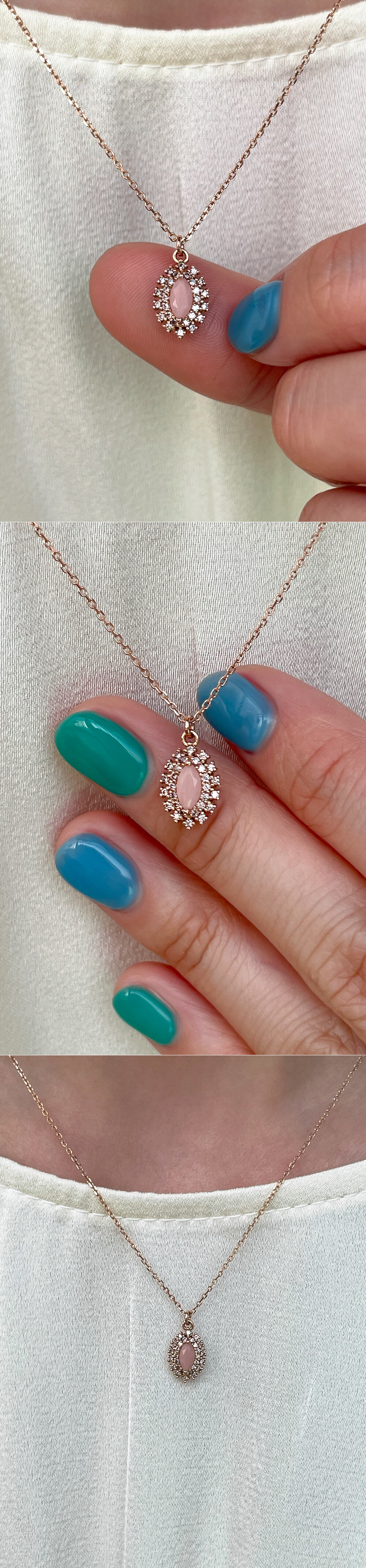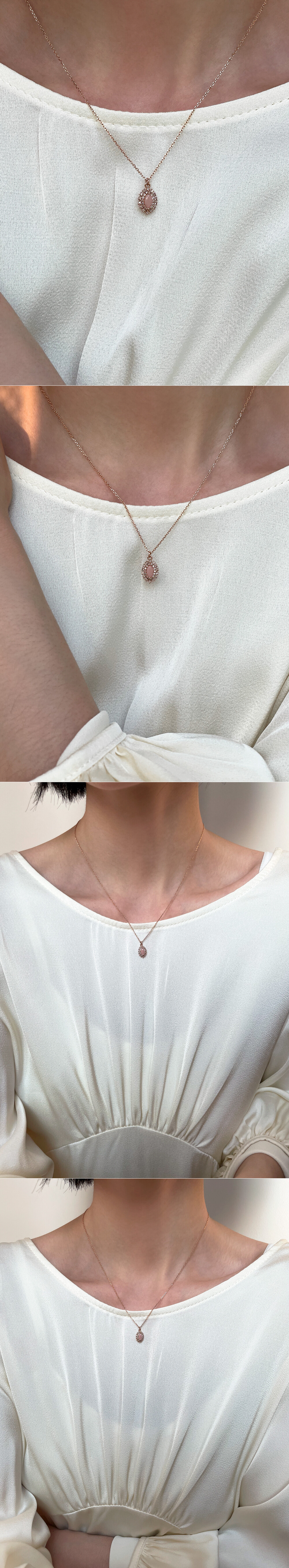 헤일로 마퀴즈 핑크 오팔 & 큐빅 목걸이