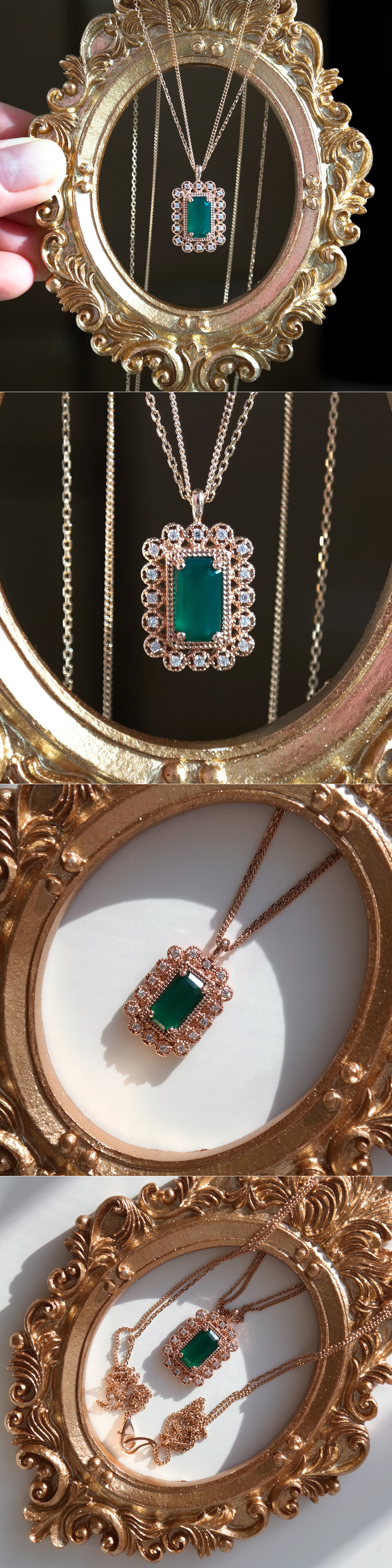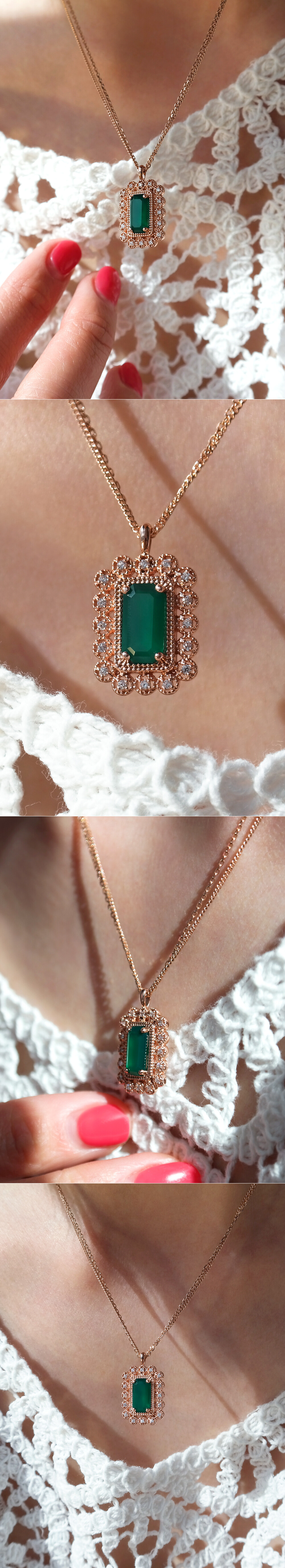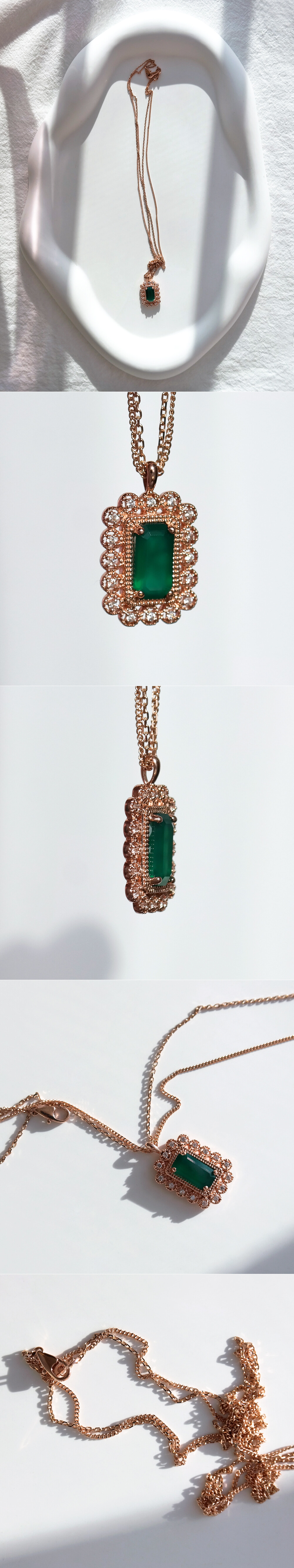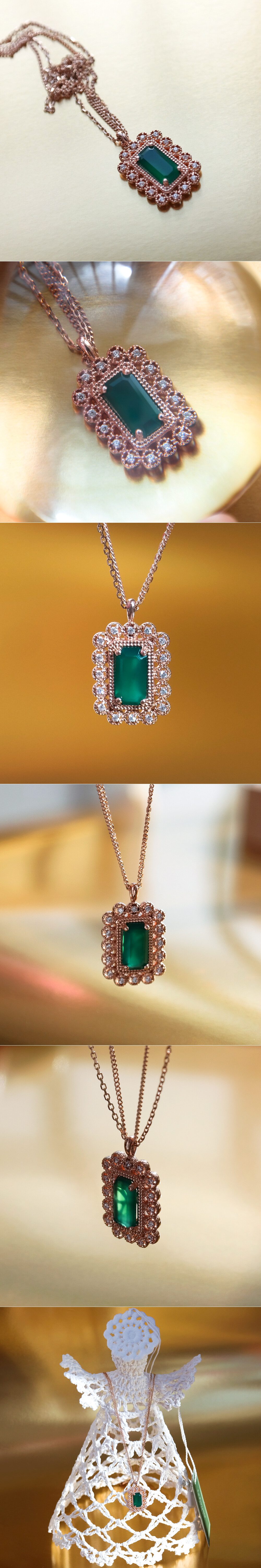 아르누보 에메랄드컷 그린 오닉스 & 큐빅 목걸이