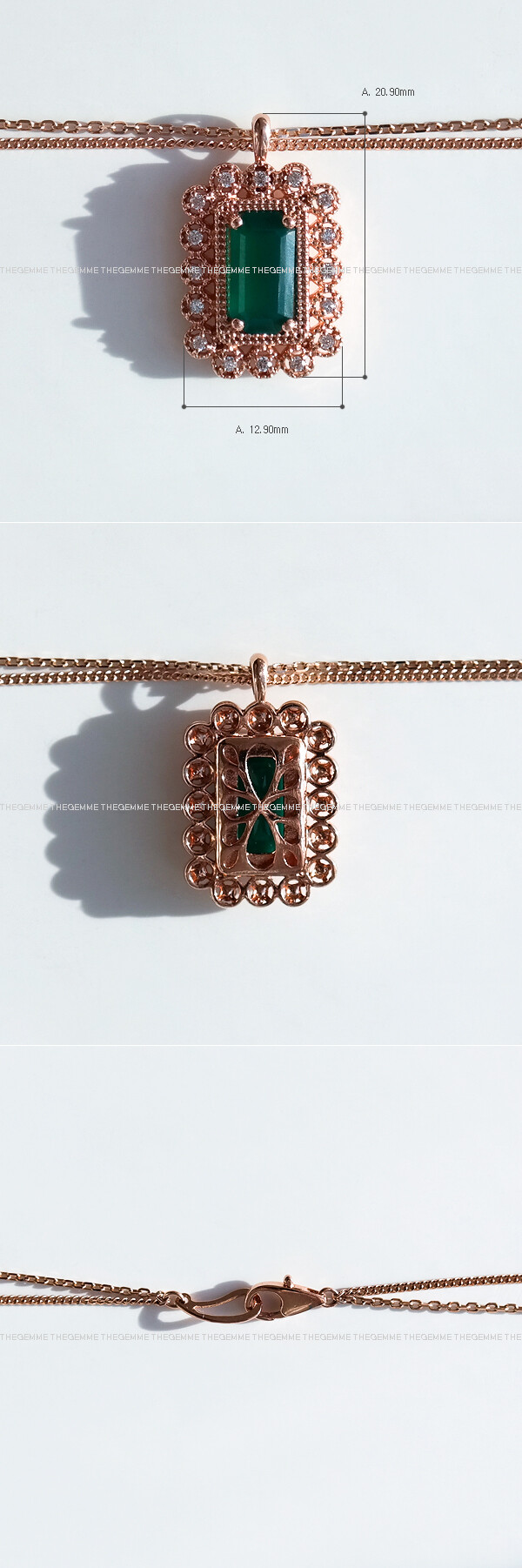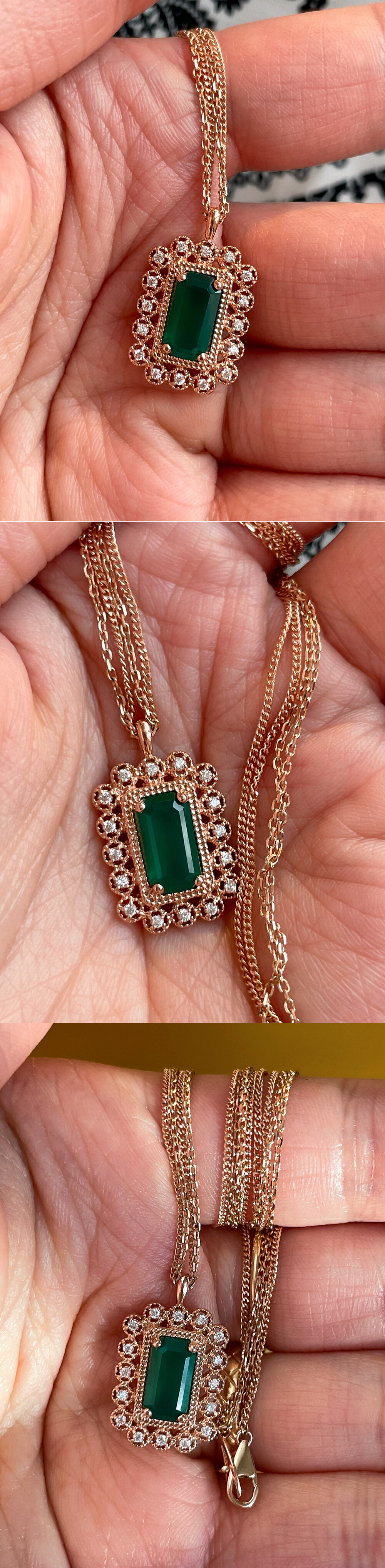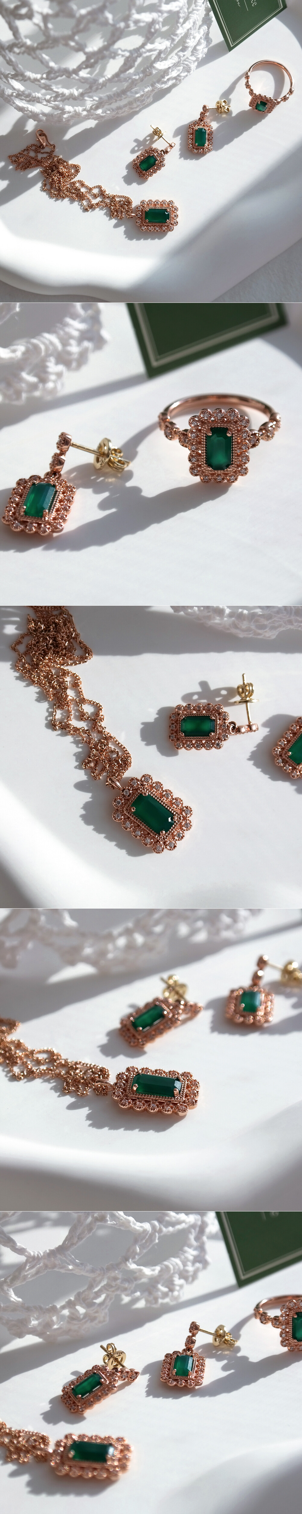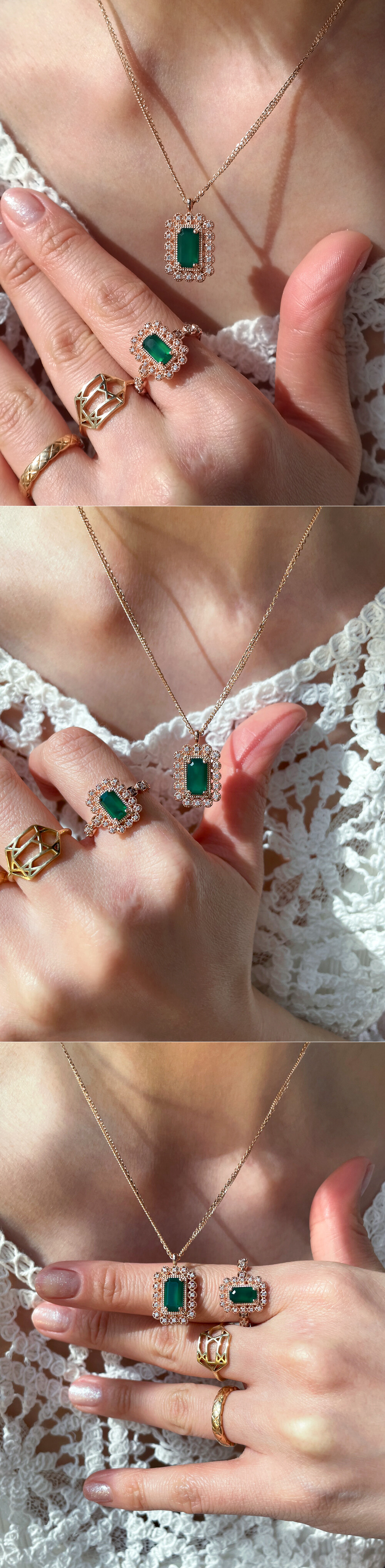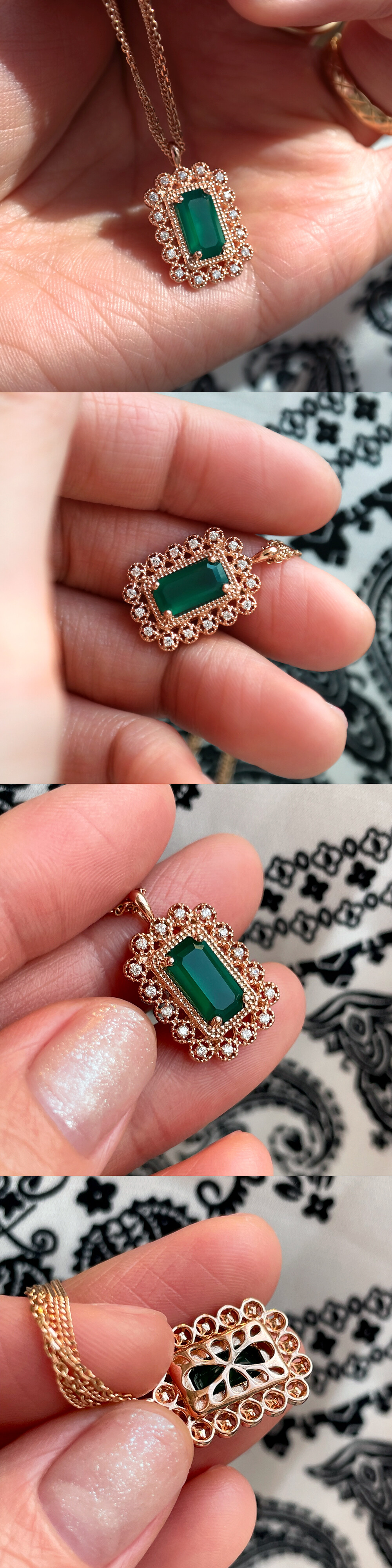 아르누보 에메랄드컷 그린 오닉스 & 큐빅 목걸이