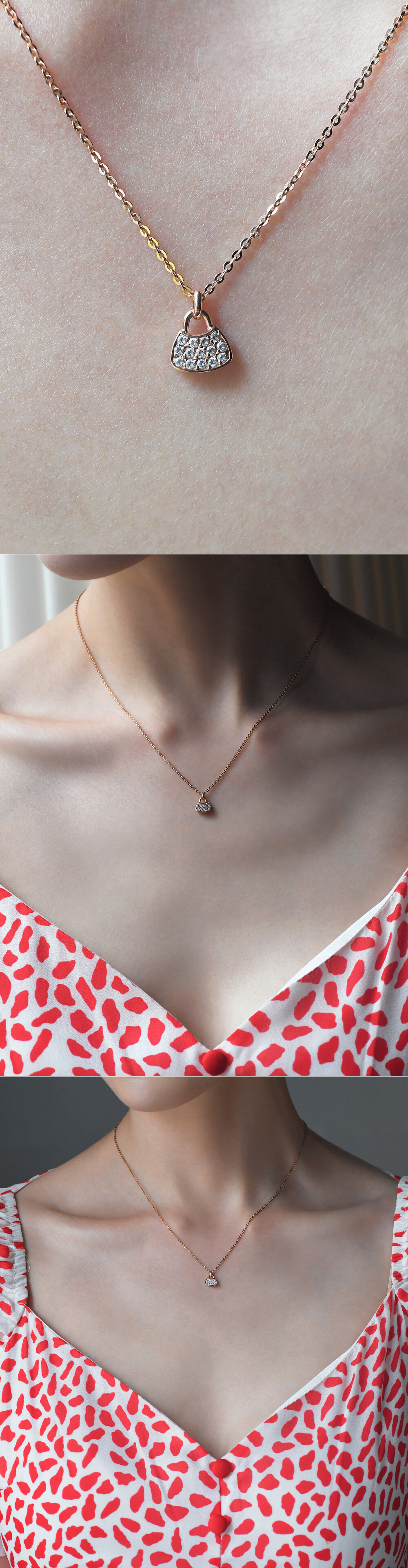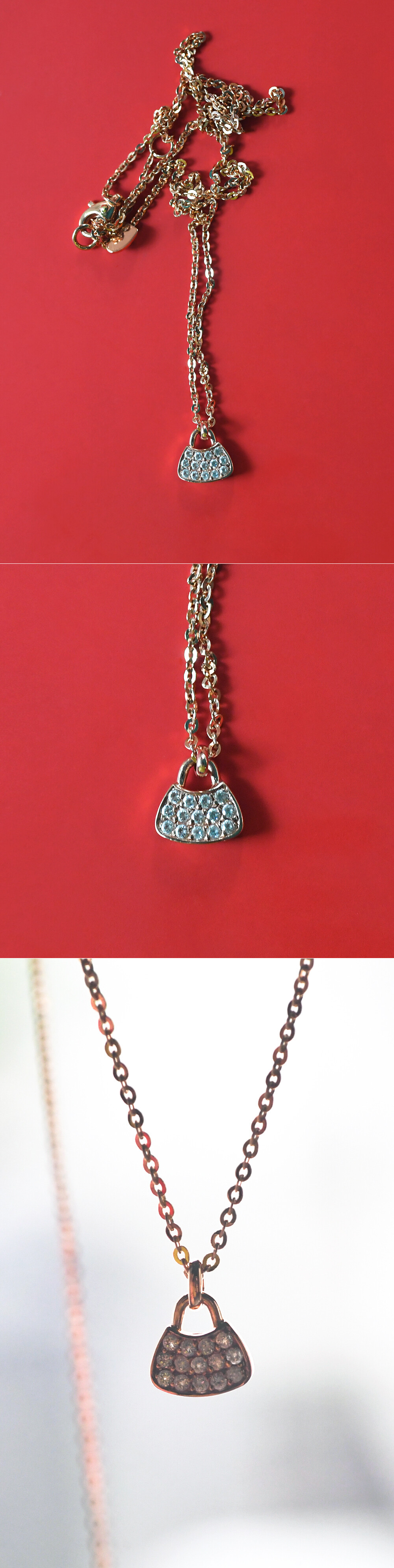 귀여운 핸드백 모티브 장식의 목걸이입니다. 👛 오밀조밀한 디자인으로 여성스러우면서 귀여운 느낌이 있어요 :) 잠금 장식 부분에도 귀여운 하트 참이 달려있답니다. 🩷 체인은 반짝반짝 빛나는 촘촘한 모줄 체인과 함께 레이어드 되었어요. 작지만 존재감 확실한 데일리 목걸이를 찾으시는 분들께 추천해 드릴게요. 🫶🏼