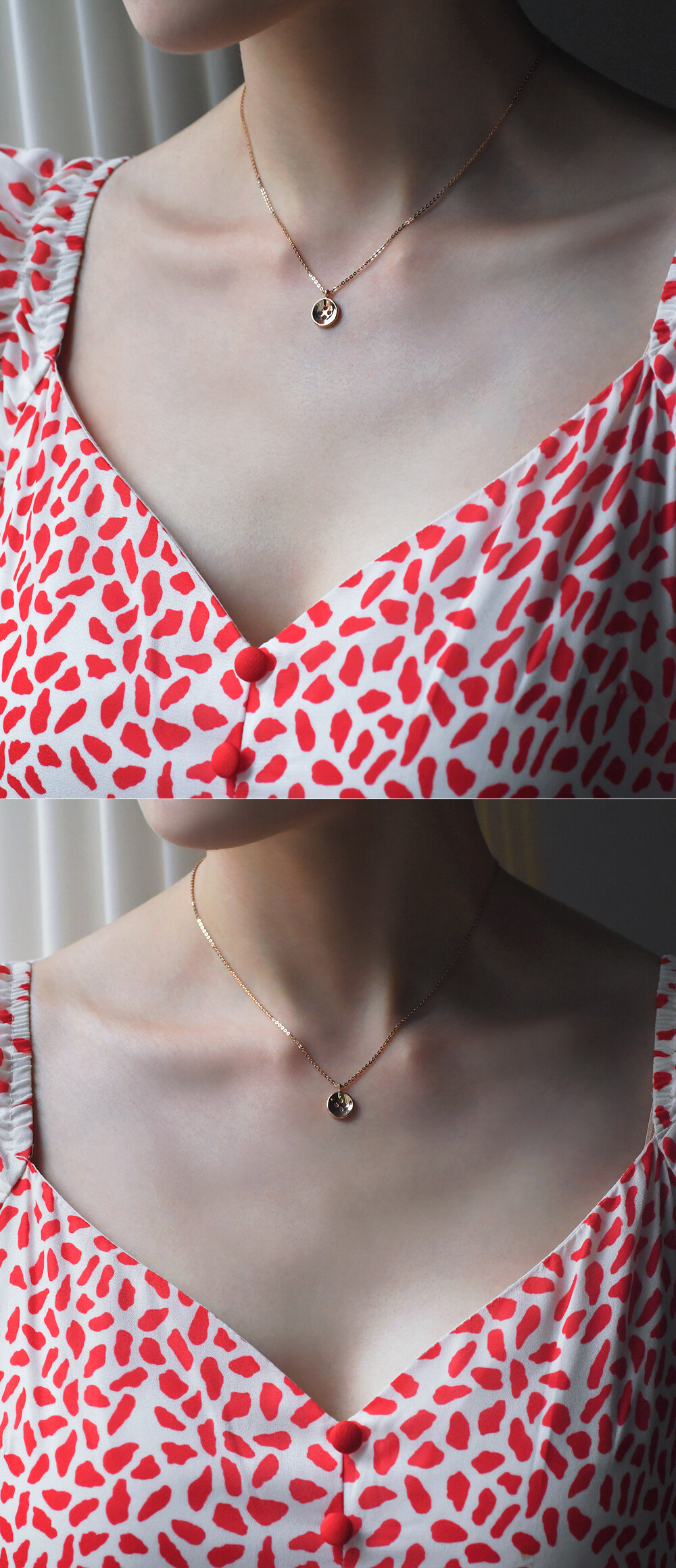 단추 모티브 장식의 목걸이입니다. 볼륨감 있는 단정한 코인 느낌으로 편안하게 착용하시기 좋아요. 잠금 장식 부분에는 귀여운 하트 참이 달려있답니다. 🩷 체인은 반짝반짝 빛나는 촘촘한 모줄 체인과 함께 레이어드 되었어요. 존재감 확실한 데일리 목걸이를 찾으시는 분들께 추천해 드릴게요. 🫶🏼