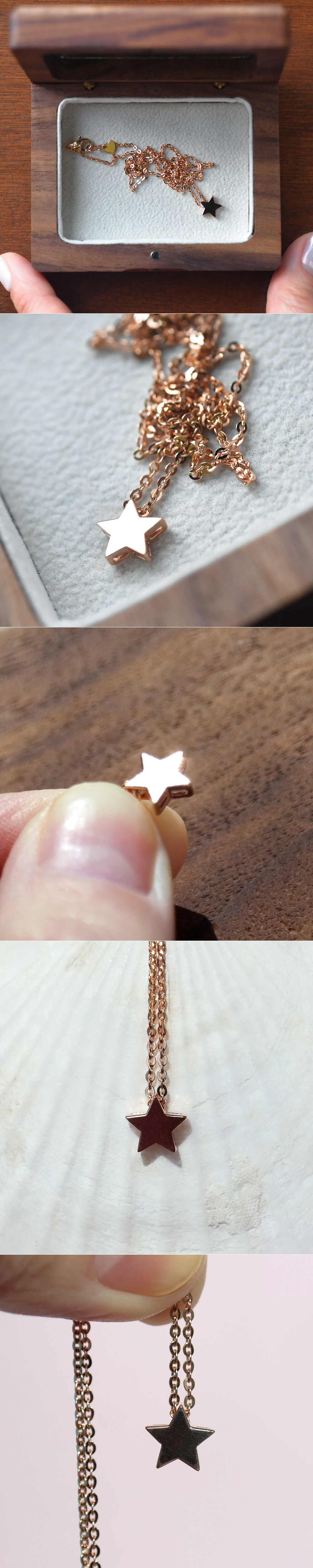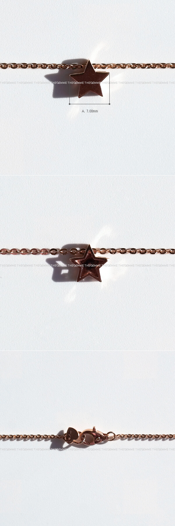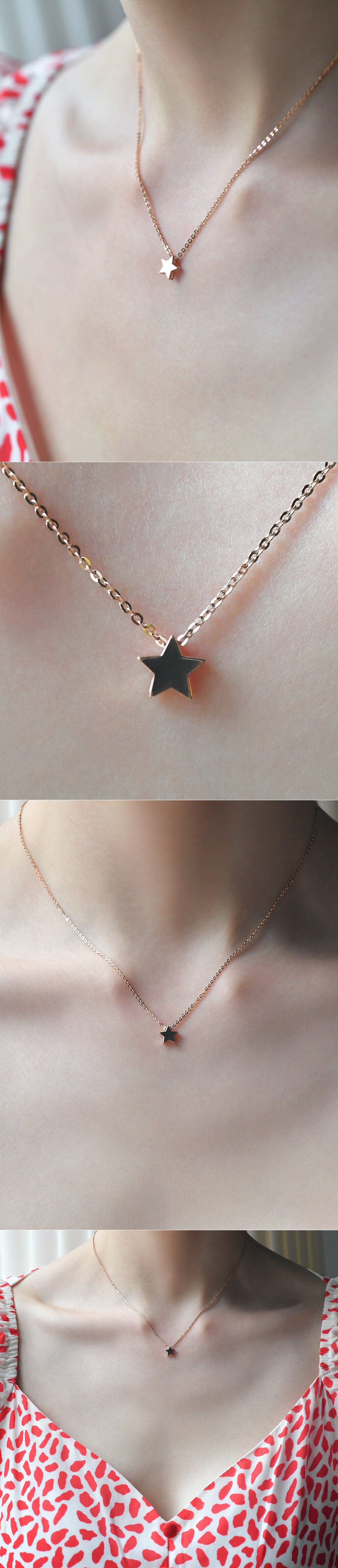플랫한 디자인의 별 목걸이입니다. ⭐️ 팬던트와 체인이 연결된 일체형 디자인으로, 깔끔하게 착용하시기 좋아요. 잠금 장식 부분에는 귀여운 하트 참이 달려있답니다. 🩷 체인은 반짝반짝 빛나는 촘촘한 모줄 체인과 함께 레이어드 되었어요. 귀엽고 심플한 느낌의 데일리 목걸이를 찾으시는 분들께 추천해 드릴게요. 🫶🏼