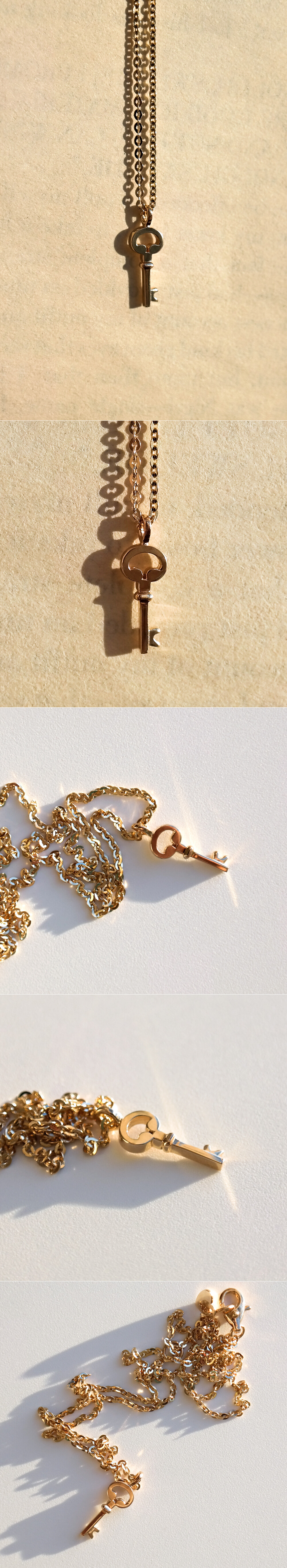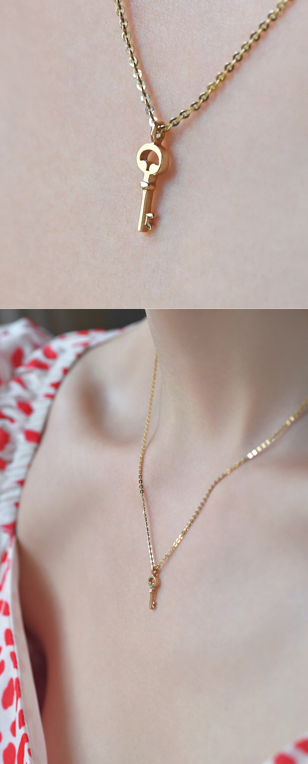 도톰한 미니 사이즈의 열쇠 목걸이입니다. 🔑 팬던트와 체인이 연결된 일체형 디자인으로, 깔끔하게 착용하시기 좋아요. 잠금 장식 부분에는 귀여운 하트 참이 달려있답니다. 🩷 체인은 반짝반짝 빛나는 촘촘한 모줄 체인과 함께 레이어드 되었어요. 귀엽고 심플한 느낌의 데일리 목걸이를 찾으시는 분들께 추천해 드릴게요. 🫶🏼