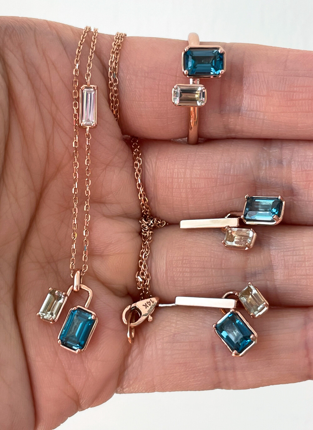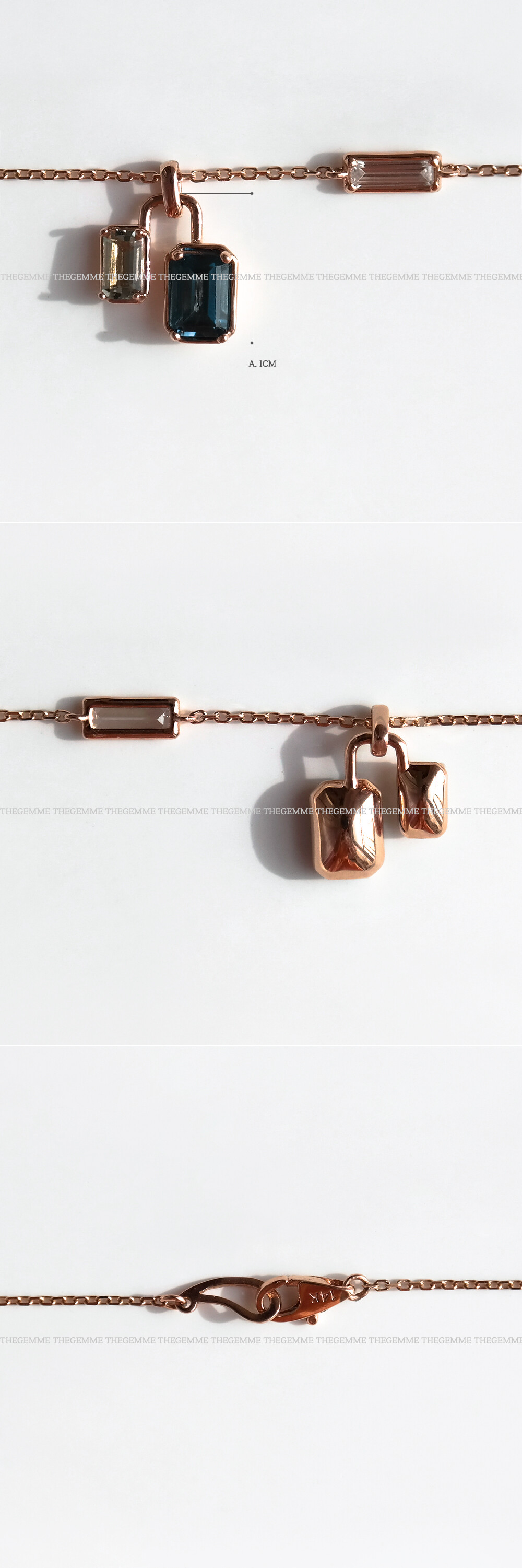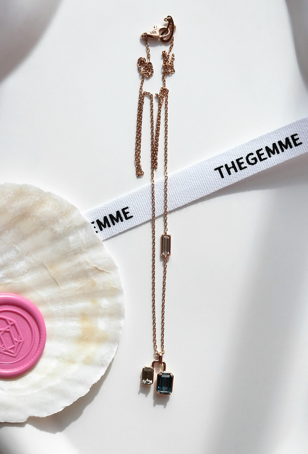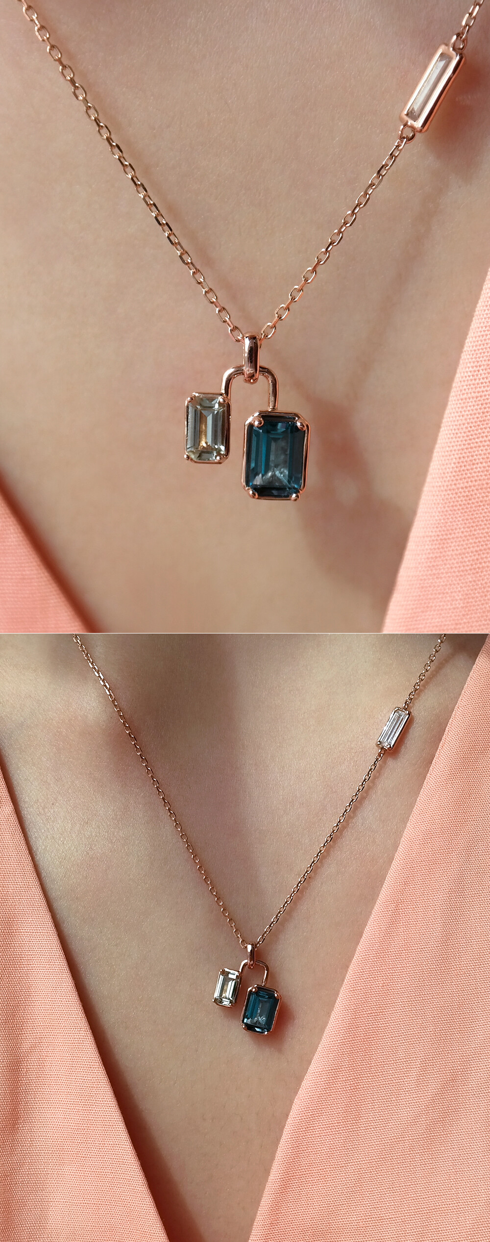 에메랄드컷 런던블루 토파즈 & 그린 쿼츠 목걸이