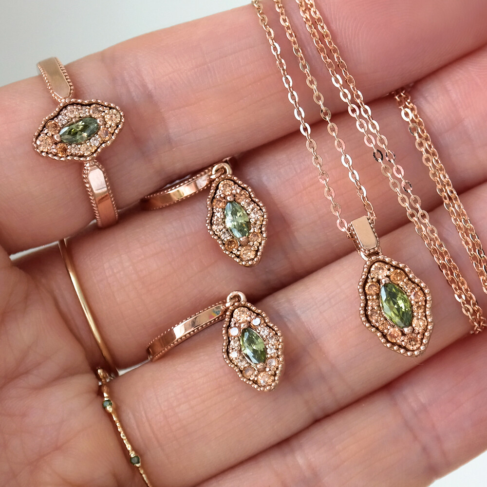 스톤 : 큐빅 (올리브/풀색, 샴페인골드~라이트브라운)