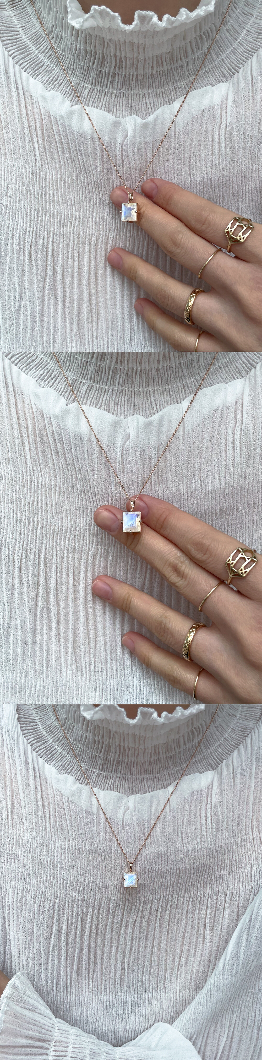 14K 3.50ct (3.50캐럿) 비하르산 프리미엄 문스톤 바게트 목걸이
