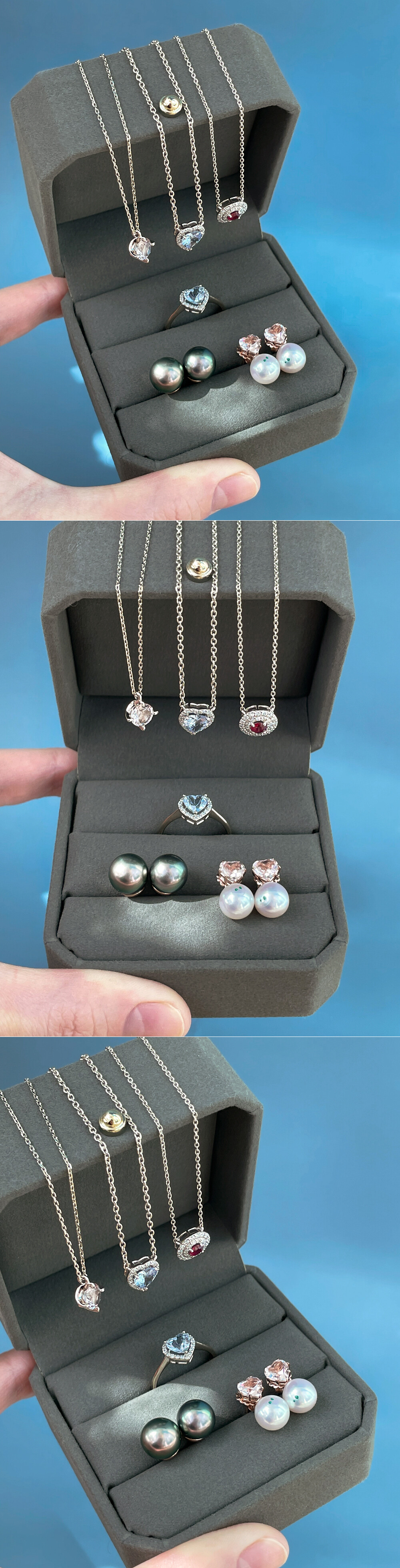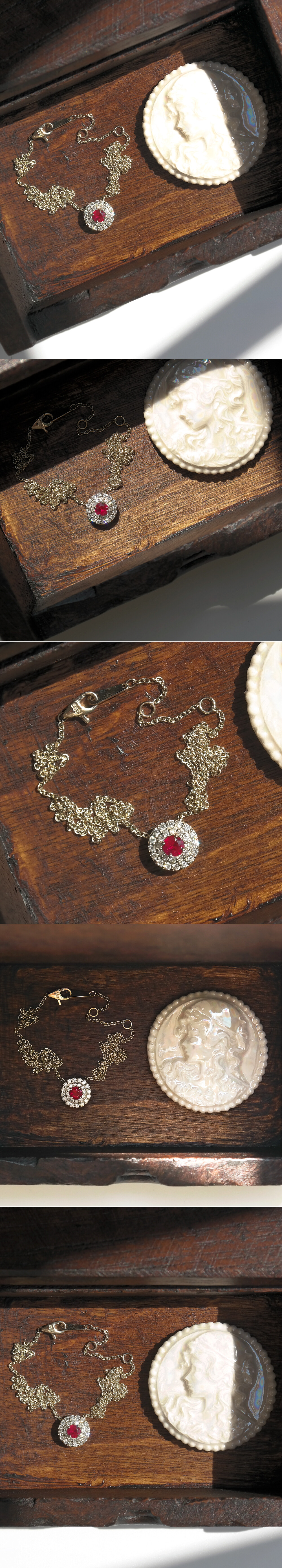 꺄 ... 이 강렬한 붉은빛의 보석, 루비 주얼리 오랜만에 소개해 드려요. 피죤 블러드 색상의 버마산 루비로 제작한 목걸이입니다. ✨ (피죤 블러드는 ”비둘기의 피“ 색을 뜻하는 말로 가장 아름다운 붉은색을 띠는 루비를 칭할 때 쓰는 단어에요.) 약 0.22~0.25ct (2.2~2.5부) 에 해당하는 루비가 메인으로 세팅되었구요, 서브 스톤으로 천연 다이아몬드를 함께 매칭하였습니다. 루비는 3부가 안되는 작은 캐럿이지만 ; 포인트 스톤으로 자격이 충분한 버마산 루비에요. 약간의 핑크빛이 맴돌면서 강렬한 붉은색을 띠는 아주 예쁜 색감으로 내포물 또한 적절하게 함유되어 있어 파이어도 잘 올라오는 양질의 스톤입니다. ^^ 메인 스톤이 한눈에 들어오는 디자인으로 제작하기 위해 중심석을 감싸는 헤일로 스타일로 제작하였답니다. 참고로, 촬영된 목걸이는 약 0.22ct (2.2부) 의 루비가 세팅되었구요, 이 목걸이만 온리원으로 판매할 예정입니다. 아직 나석들이 남아있어 스톤 소진 시까지 원하시는 컨디션으로 주문 제작하실 수 있도록 옵션을 열어두었어요. 다만, 남아있는 루비들은 2.5부 캐럿에 가까운 스톤들이라 (주문 제작으로 주문 시) 단가가 조금 높게 설정되었습니다. 루비가 워낙 가격이 고가인 스톤이라 아주 조금만 캐럿이 올라가도 기하급수적으로 가격이 높아지기 때문이에요. (대부분의 사람들은 다이아몬드가 더 가격이 높을 것이라 생각하시는데 좋은 품질의 루비는 수요가 높은 데다가 이제 원석 고갈로 인해 웬만한 다이아몬드보다 가격이 더 높은 편입니다.) 그리고 아마 보석을 사랑하시는 분들이라면 잘 아시겠지만, 루비는 유색 보석 중에서도 주요 3대 보석에 속하는 보석으로서 대중들에게 가장 많이 알려진 보석 중 하나에요. 그만큼 아름다운 보석으로서의 가치를 크게 인정받아 전 세계적으로 가장 수요가 높고 또 수요가 높은 만큼 가치도 굉장히 높습니다. (특히나 루비의 최고의 산지인 버마산 루비에 이런 피죤 블러드 색상을 가진 양질의 좋은 루비는 ; 1캐럿이 넘어가면 수백만 원부터, 5캐럿이 넘어가면 수천만 원부터 시작할 정도로 그 가치가 대단하답니다.) 이렇게 천연 루비의 가격이 고가이다 보니 요즘은 저가의 함침 루비나 합성 루비가 많이 사용되는 것이지요. 글이 길어졌는데 결론적으로 이 정도 퀄리티를 가진 양질의 천연 루비는 그만큼 소장 가치가 높고 보석으로서 갖추어야 할 모든 조건들을 다 갖추고 있다는 설명이었어요 ... ㅎ 조금 더 더하자면 루비는 사파이와 같은 커런덤 종으로 모스의 경도 (9) 에 해당하는 스톤입니다. 다이아몬드 (10) 다음으로 긁힘에 대한 저항이 강하기 때문에 커런덤이 세팅된 주얼리는 데일리용 스톤 주얼리로 활용하기에도 전혀 손색이 없답니다. 참고해 주시구요, 다른 자세한 디테일은 하단의 상세 설명에서 확인해 주세요. 희소성 높은 버마산 루비로 제작한 미니멀 파인 주얼리, 특별하고 고급스러운 목걸이를 찾으시는 분들께 추천해 드릴게요. ❤️