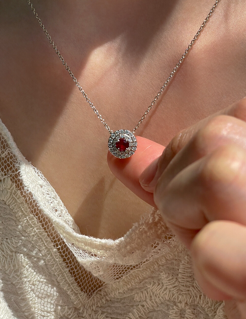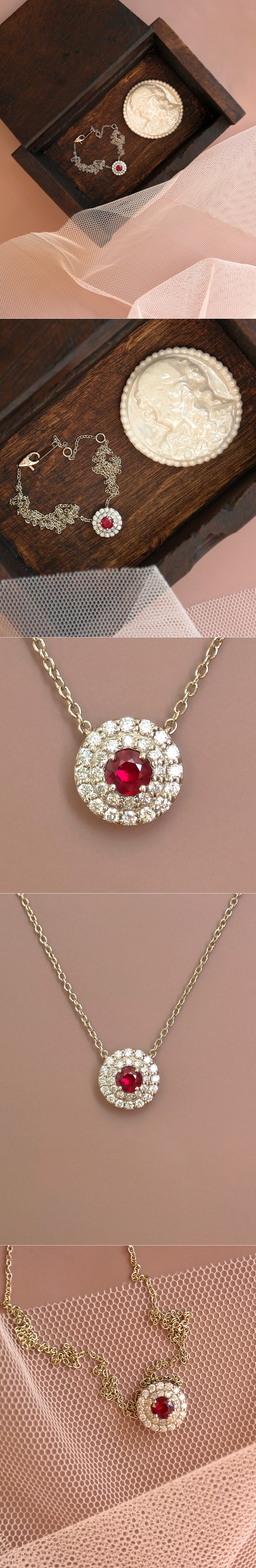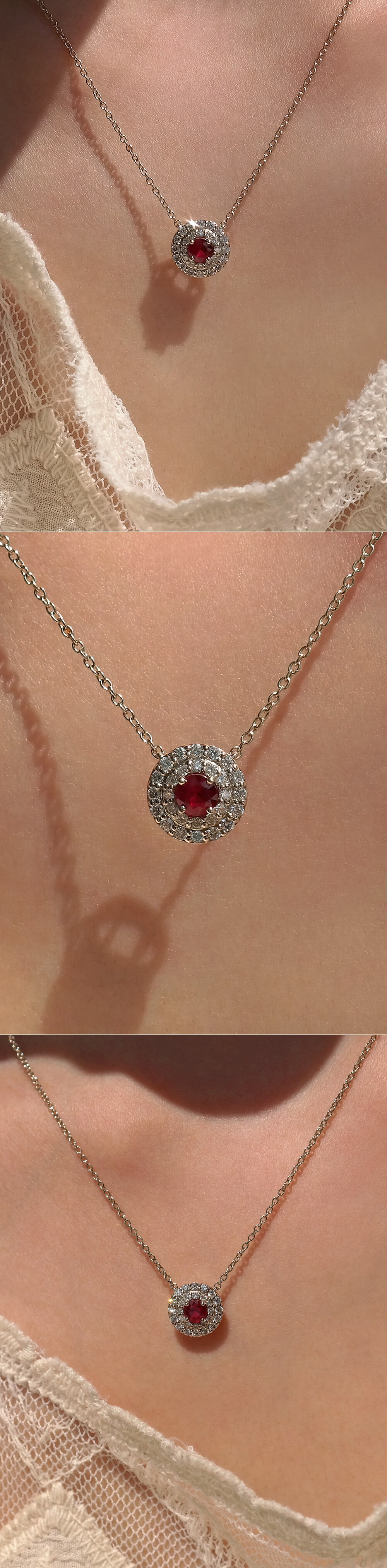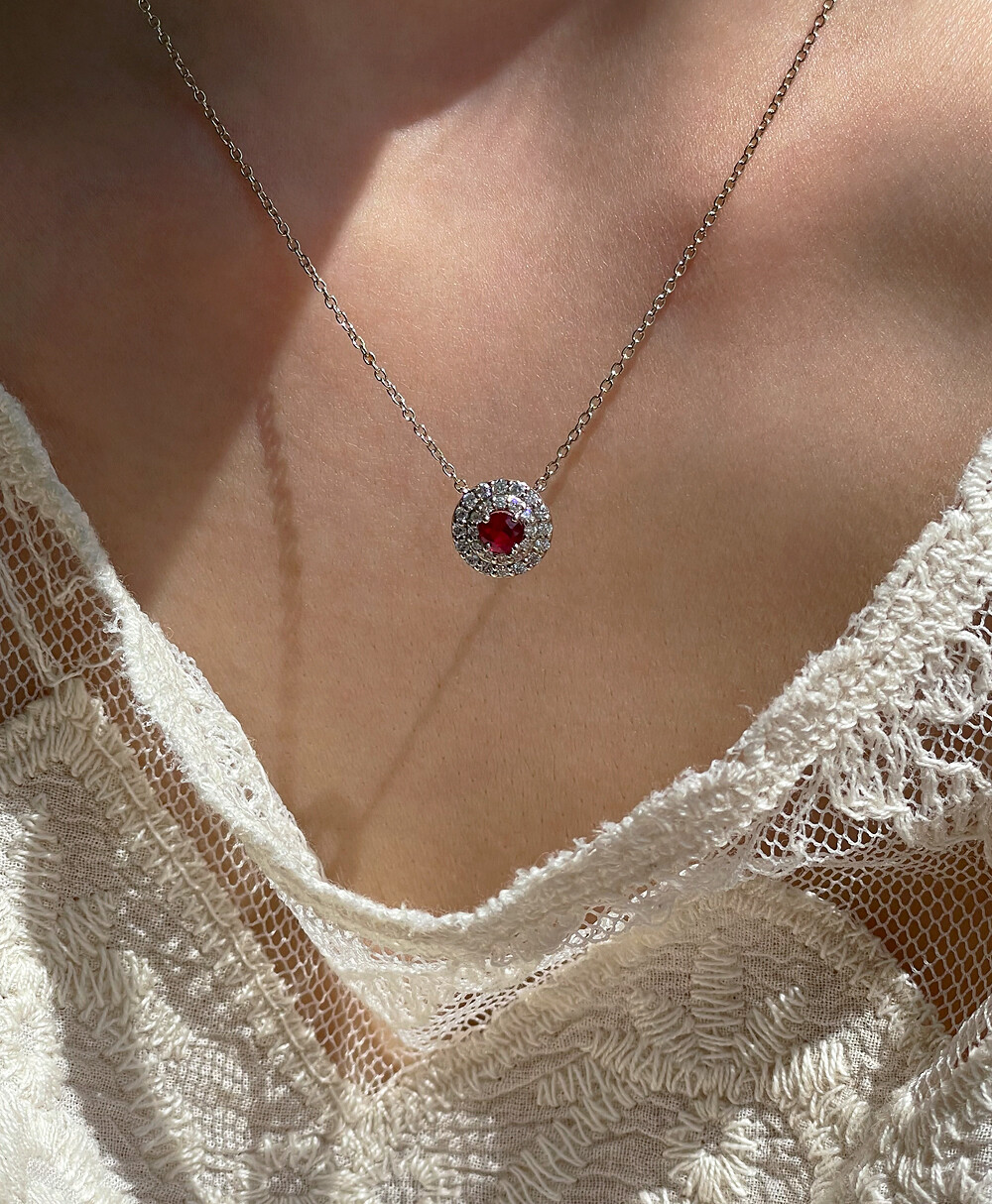 0.25ct (2.5부) 버마산 루비 & 다이아몬드 헤일로 목걸이