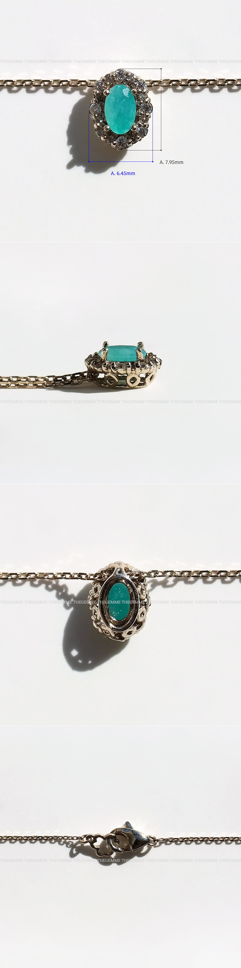 헤일로 세팅으로 우아하고 고급스러운 이미지를 연출해 주는 목걸이입니다. 빛이 보석 주위를 감싸듯 반사되어 세련된 분위기를 더해줍니다.
