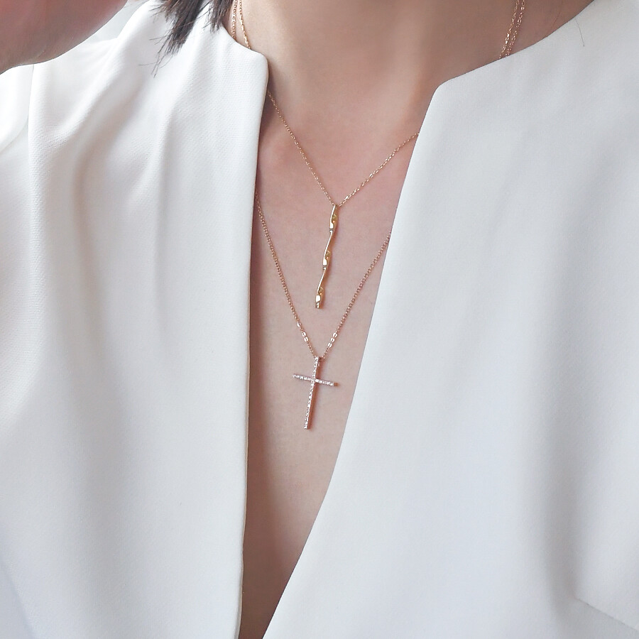 데일리 목걸이로 착용하시기 좋은 십자가 목걸이입니다. 간결하고 깔끔한 디자인으로 어떤 옷차림에도 잘 어울려요~ 팬던트 사이즈가 조금 크기 때문에 45CM 길이가 기성 사이즈인 롱 목걸이 스타일입니다. 기본 레이어드 목걸이보다 약간 길게 착용하시길 권해드릴게요 :)