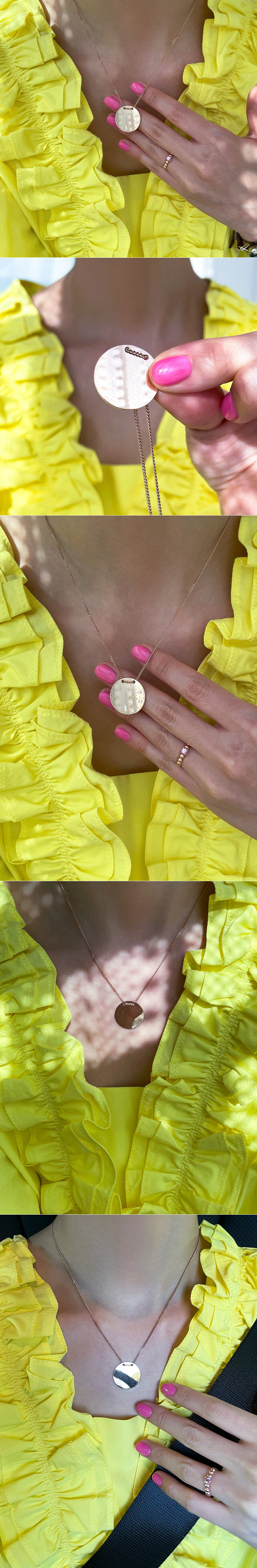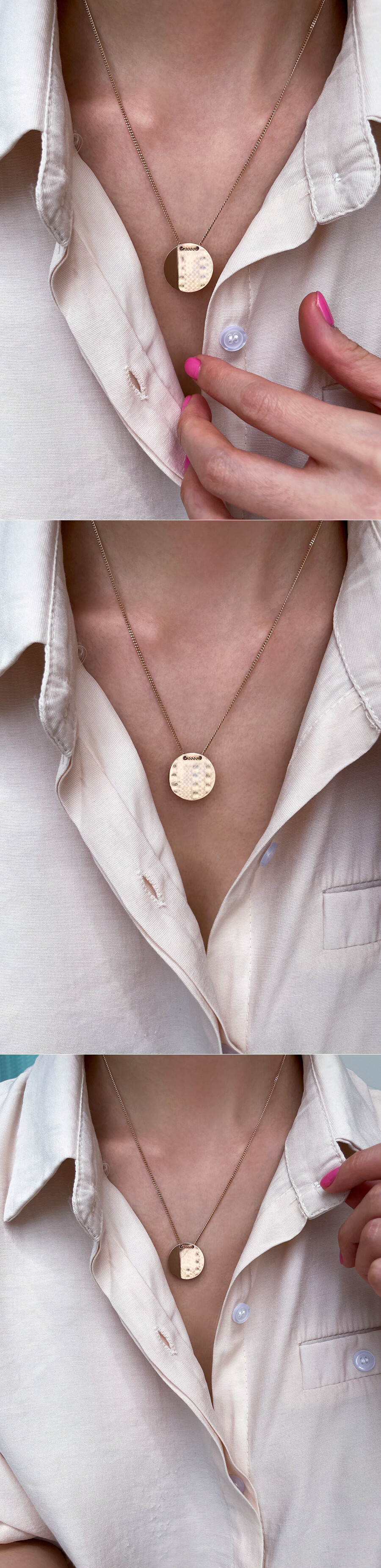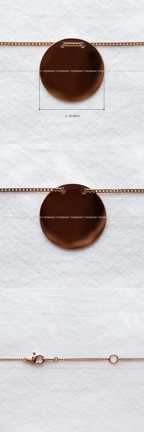 여기저기 어디에나 잘 어울리는 코인 디자인의 민자 목걸이입니다. 💜 코인 사이즈는 지름 약 2CM 사이즈이구요, 두께감이 있는 볼드한 중량감의 팬던트입니다. 팬던트 크기가 비교적 큰 편이라서 기성 사이즈인 약 45CM부터 추천해 드리고 있어요. 데일리 목걸이로 착용하기가 너~무 좋아서 저도 하나 소장하고 있답니다. (소장용 목걸이로 촬영하였어요.) 이 목걸이의 포인트는 코인과 체인이 연결된 부분인데요, 일반 고리형 팬던트보다 훨씬 더 클래식하면서 고급스러운 느낌이에요. 사계절 내내 편안하게 착용하실 데일리 목걸이를 찾으시는 분들에게 강추해 드릴게요. 💖 * 옵션에서 이니셜 추가 가능합니다 :)