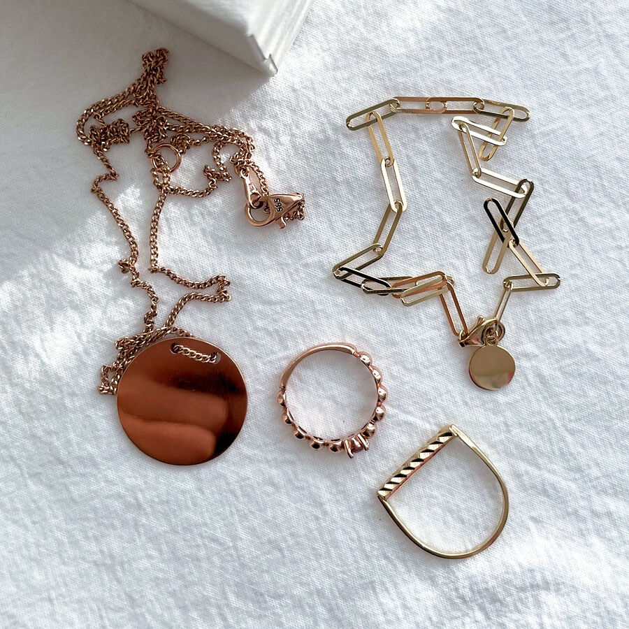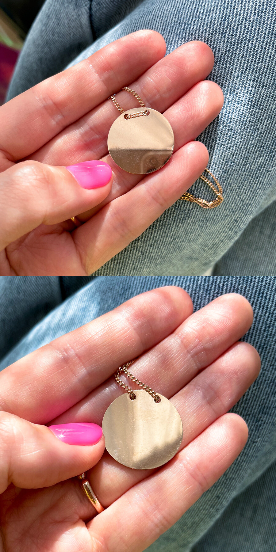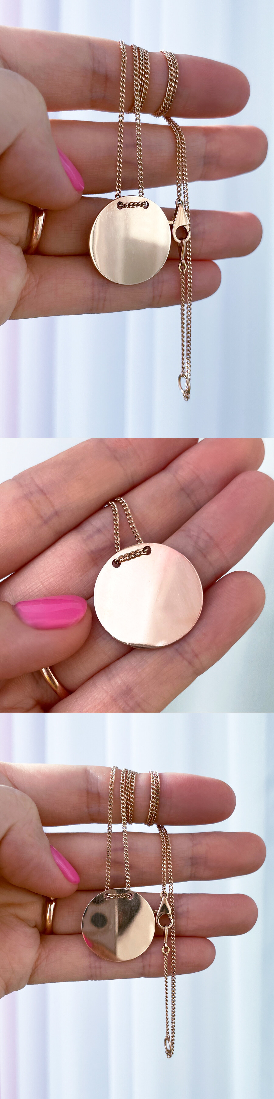 여기저기 어디에나 잘 어울리는 코인 디자인의 민자 목걸이입니다. 💜 코인 사이즈는 지름 약 2CM 사이즈이구요, 두께감이 있는 볼드한 중량감의 팬던트입니다. 팬던트 크기가 비교적 큰 편이라서 기성 사이즈인 약 45CM부터 추천해 드리고 있어요. 데일리 목걸이로 착용하기가 너~무 좋아서 저도 하나 소장하고 있답니다. (소장용 목걸이로 촬영하였어요.) 이 목걸이의 포인트는 코인과 체인이 연결된 부분인데요, 일반 고리형 팬던트보다 훨씬 더 클래식하면서 고급스러운 느낌이에요. 사계절 내내 편안하게 착용하실 데일리 목걸이를 찾으시는 분들에게 강추해 드릴게요. 💖 * 옵션에서 이니셜 추가 가능합니다 :)