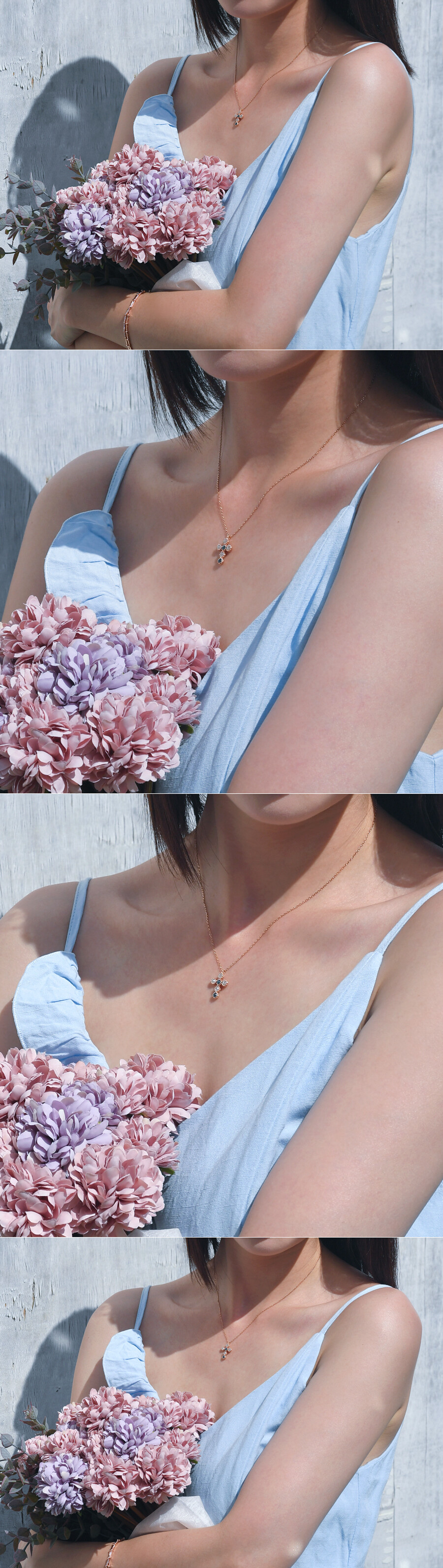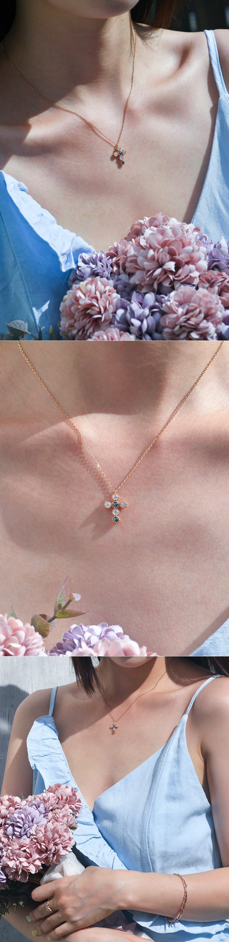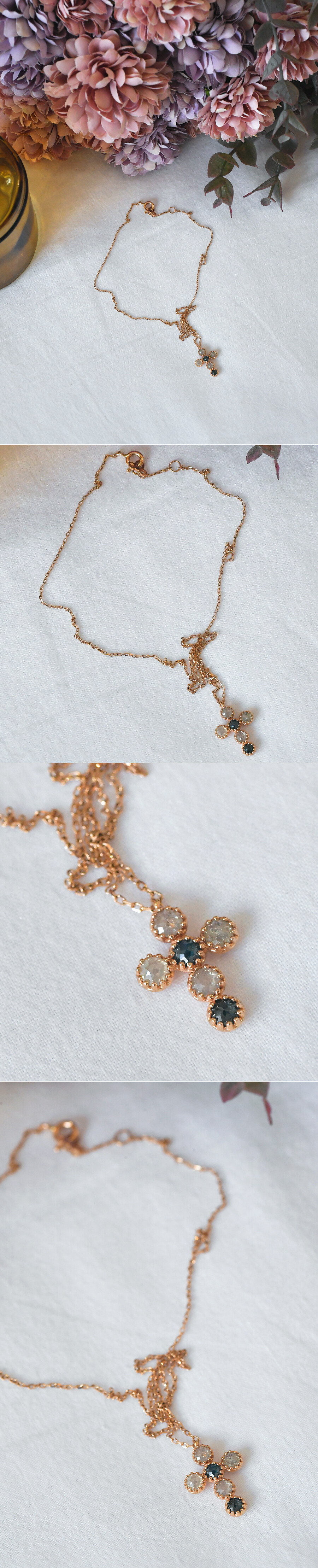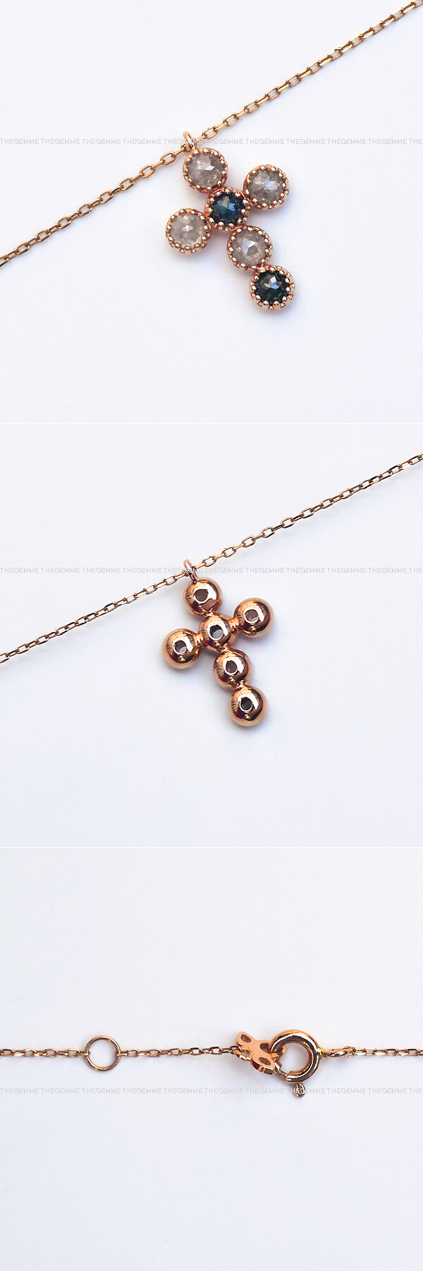 사랑스럽고 귀여운 로즈 컷의 러프 다이아몬드가 세팅된 십자가 목걸이입니다. 그레이 러프 다이아몬드와 블루 러프 다이아몬드가 함께 세팅된 디자인으로 유니크한 포인트 목걸이로 착용하시기 좋습니다 :) * 옵션에서 다이아몬드 색상 원톤으로도 선택하여 주문 가능합니다 :)