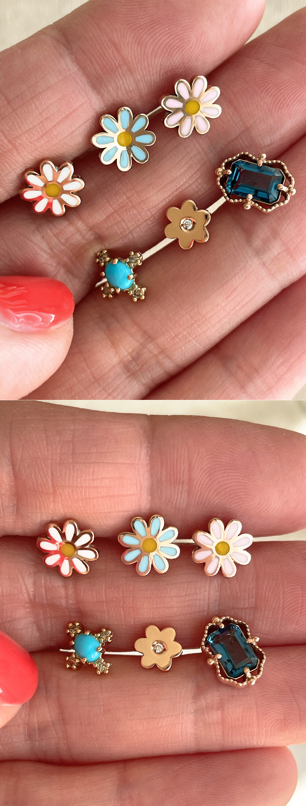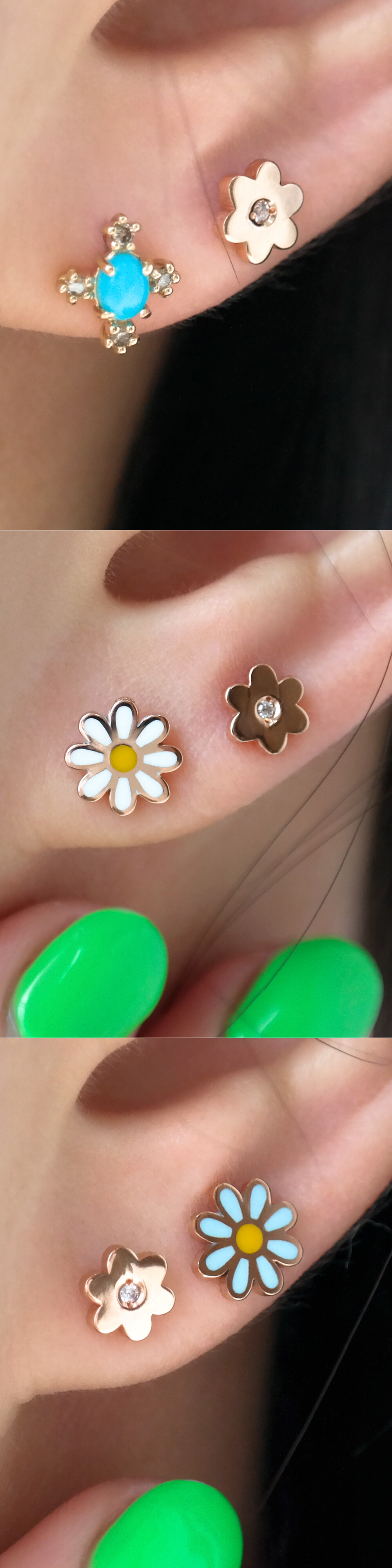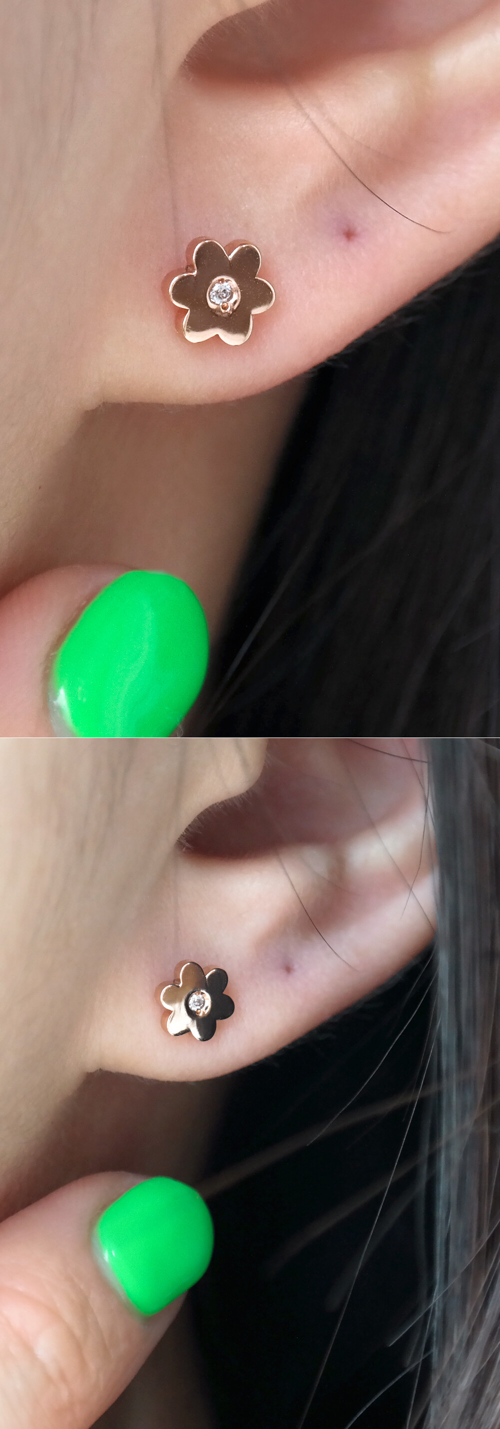귀여운 쁘띠 사이즈의 꽃 모양의 피어싱입니다. 🌸 작지만 두께가 도톰해서 존재감 확실해요. 💜