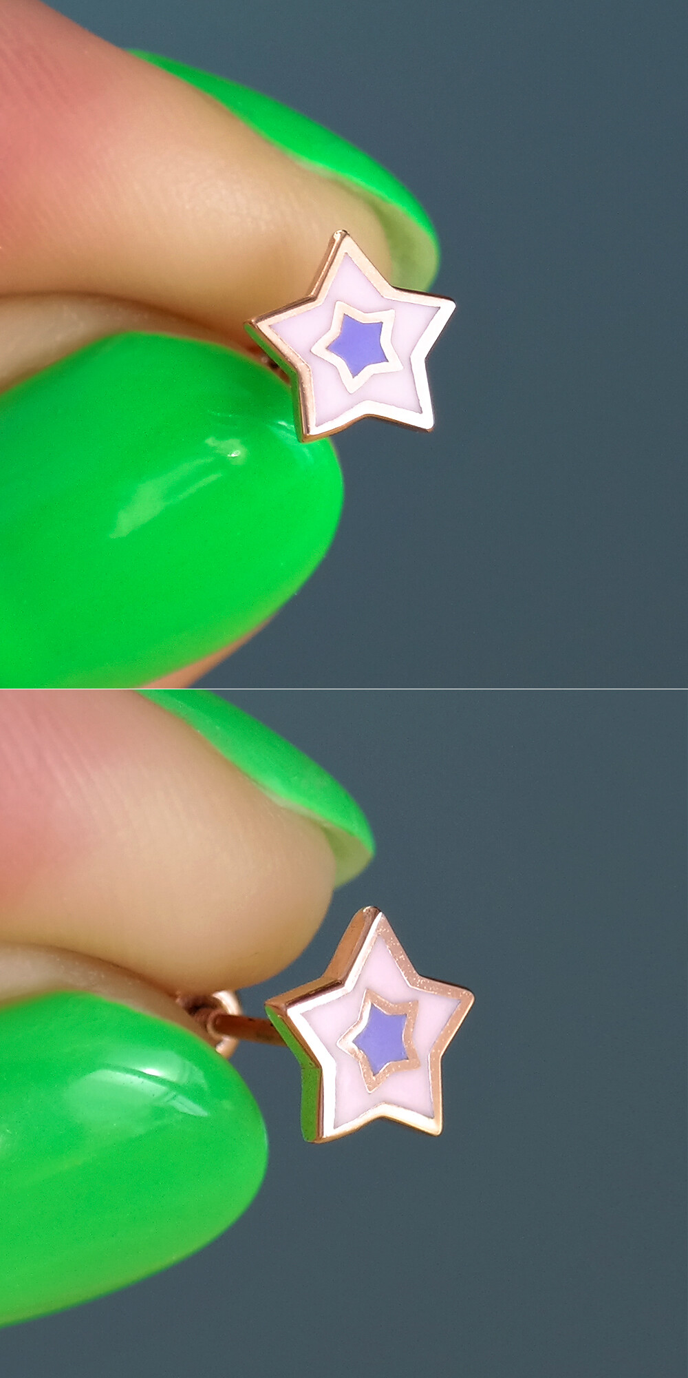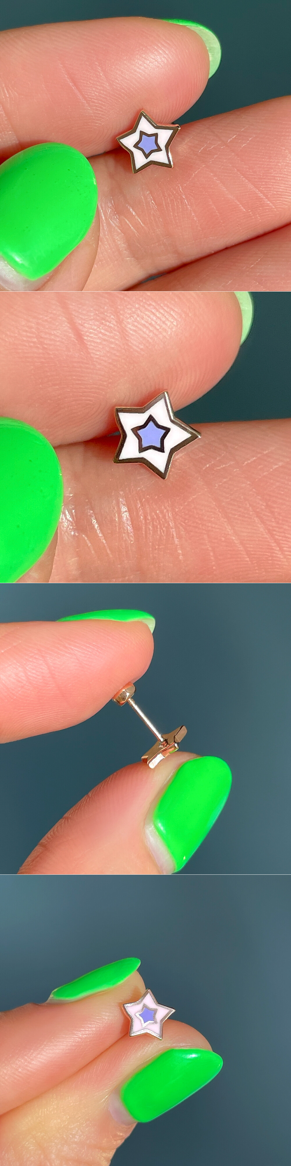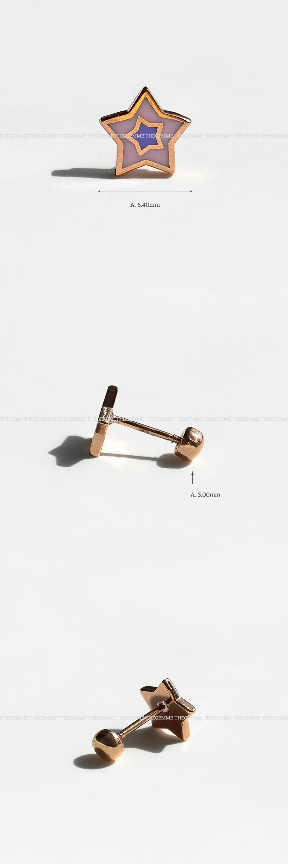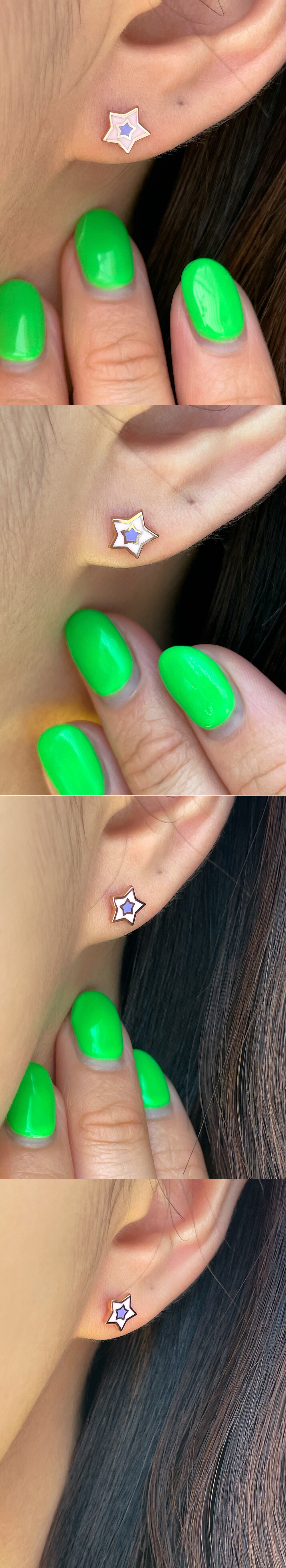 귀엽고 깜찍한 별 모티브의 피어싱입니다. ⭐️ 작지만 밝고 화사한 투톤 컬러 디자인이라 포인트 주얼리로 활용하시기 좋아요 :) 별 색상은 ; 골드의 표면에 얇게 컬러 에폭을 입힌 것입니다. 이 점 참고해 주시구요, 데일리 귀걸이 및 피어싱을 찾으시는 분들께 추천해 드릴게요. 🩷