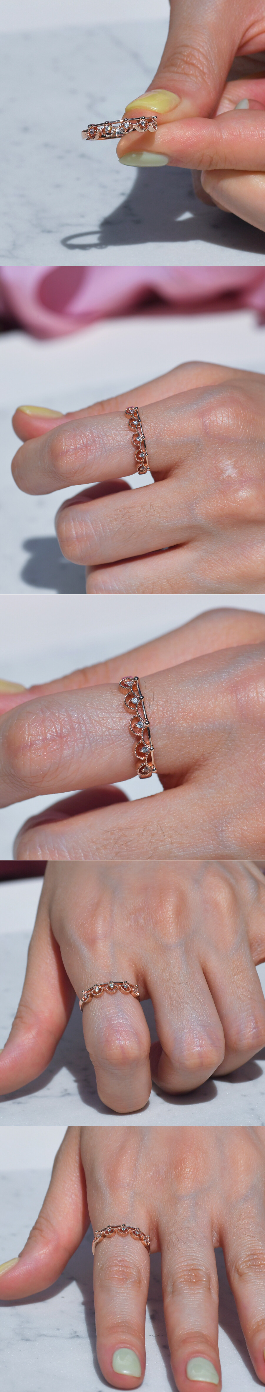 세밀하고 잔잔한 디테일이 들어간 티아라 스타일의 큐빅 반지입니다. 가드링이나 레이어드 반지로 활용하시기 좋아요 :)