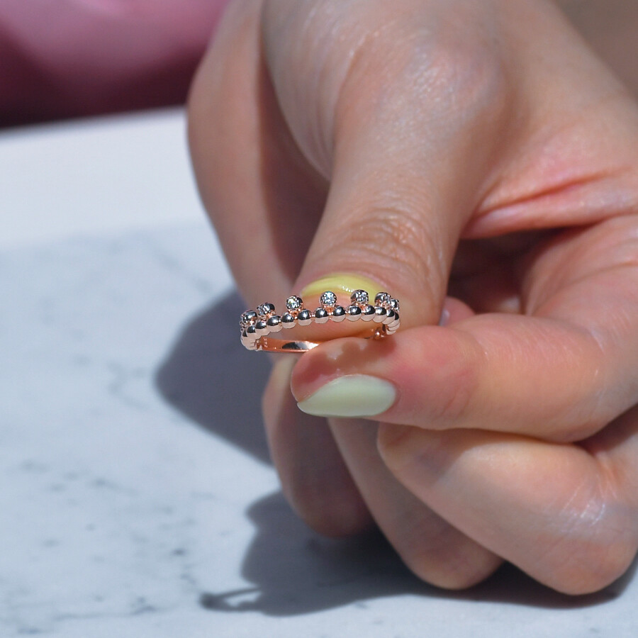 귀여운 볼 디자인의 티아라 스타일 큐빅 반지입니다. 가드링이나 레이어드 반지로 활용하시기 좋아요 :)