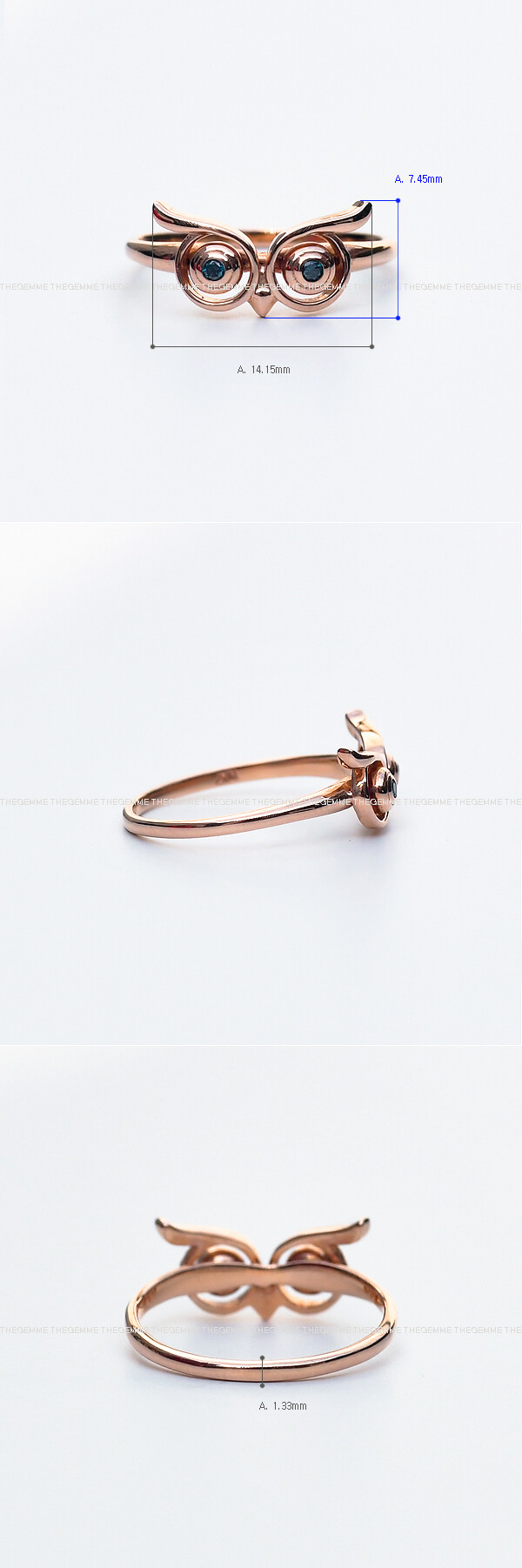 블루 다이아몬드 부엉이 반지