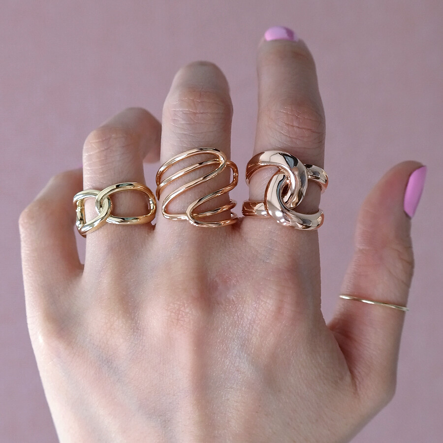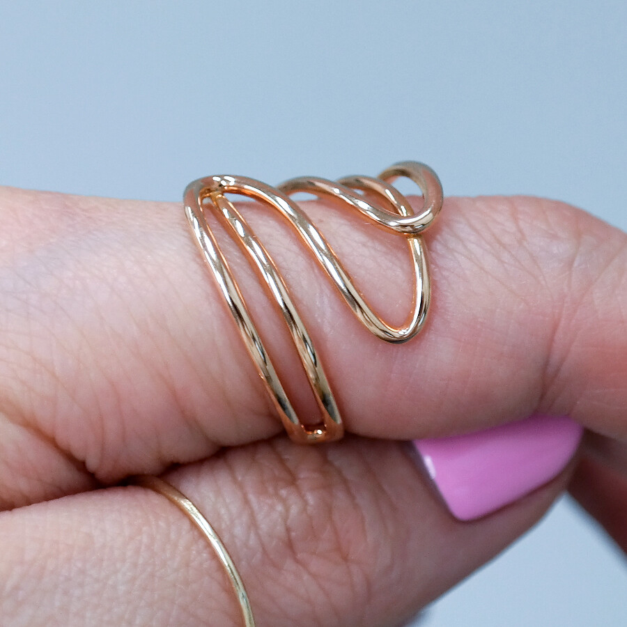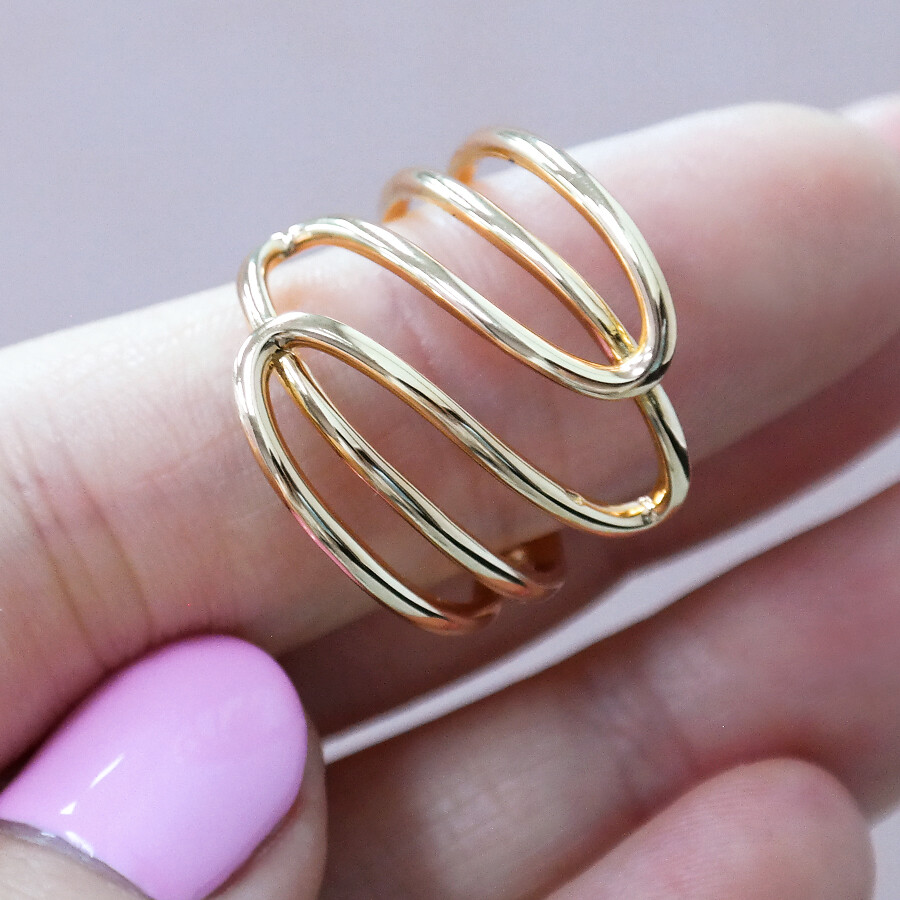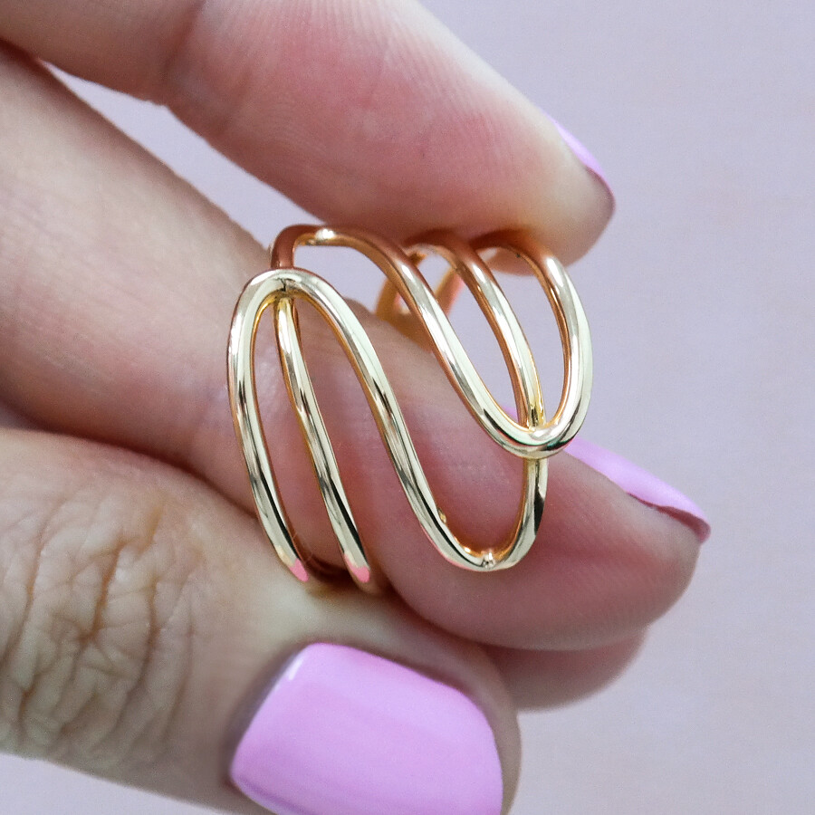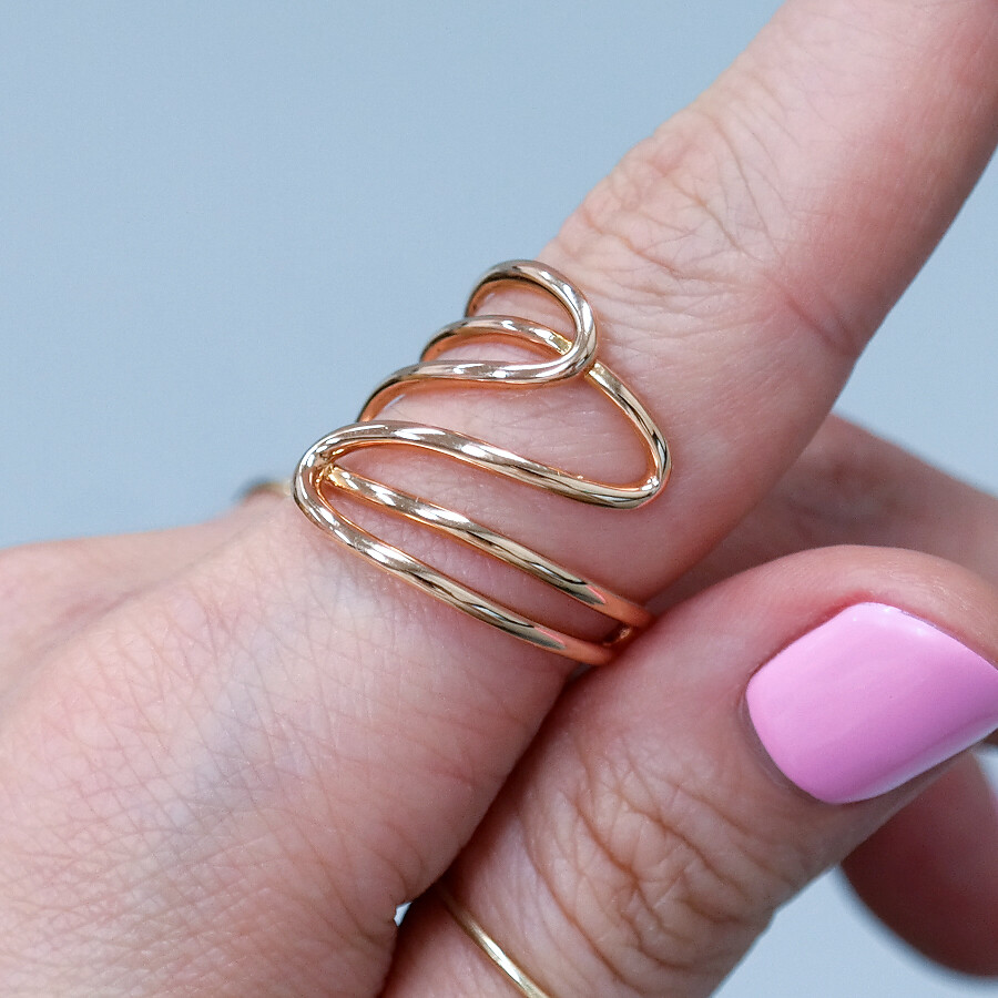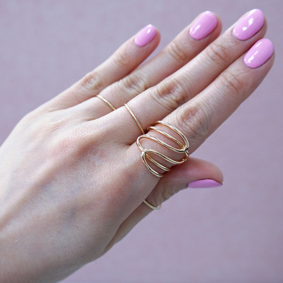 파이프 형태의 금선이 웨이브 형태로 겹쳐진 디자인의 반지입니다. 유니크한 반지를 선호하시는 분들께 추천해 드려요 :)