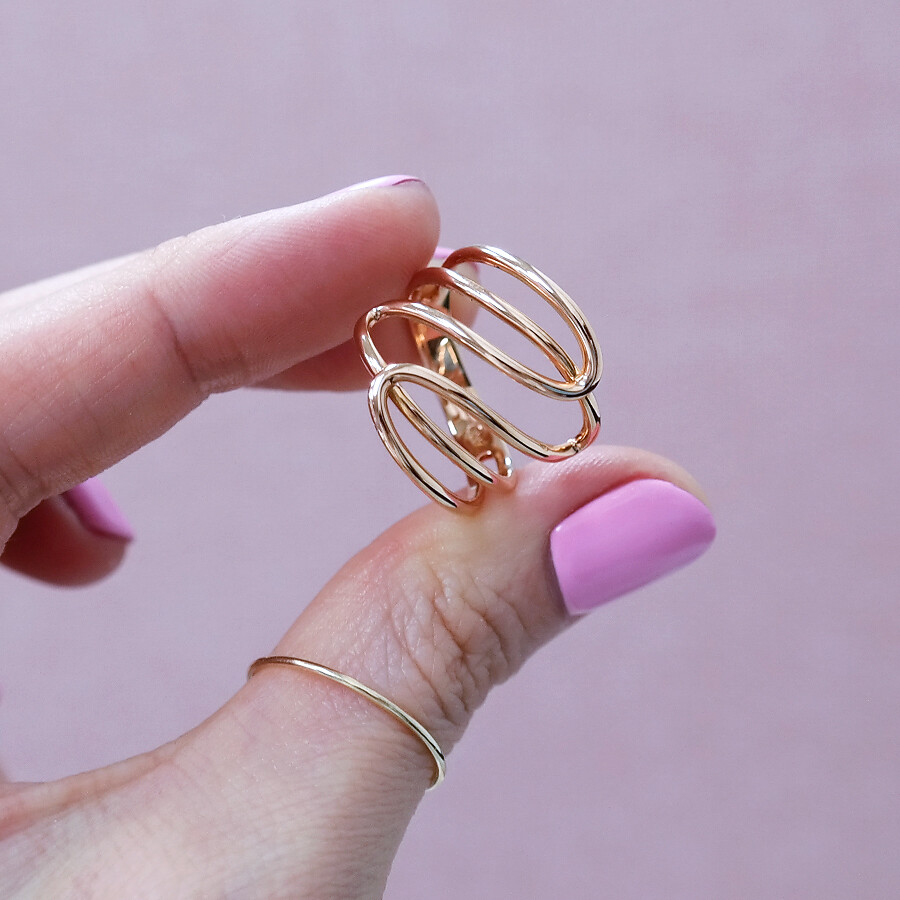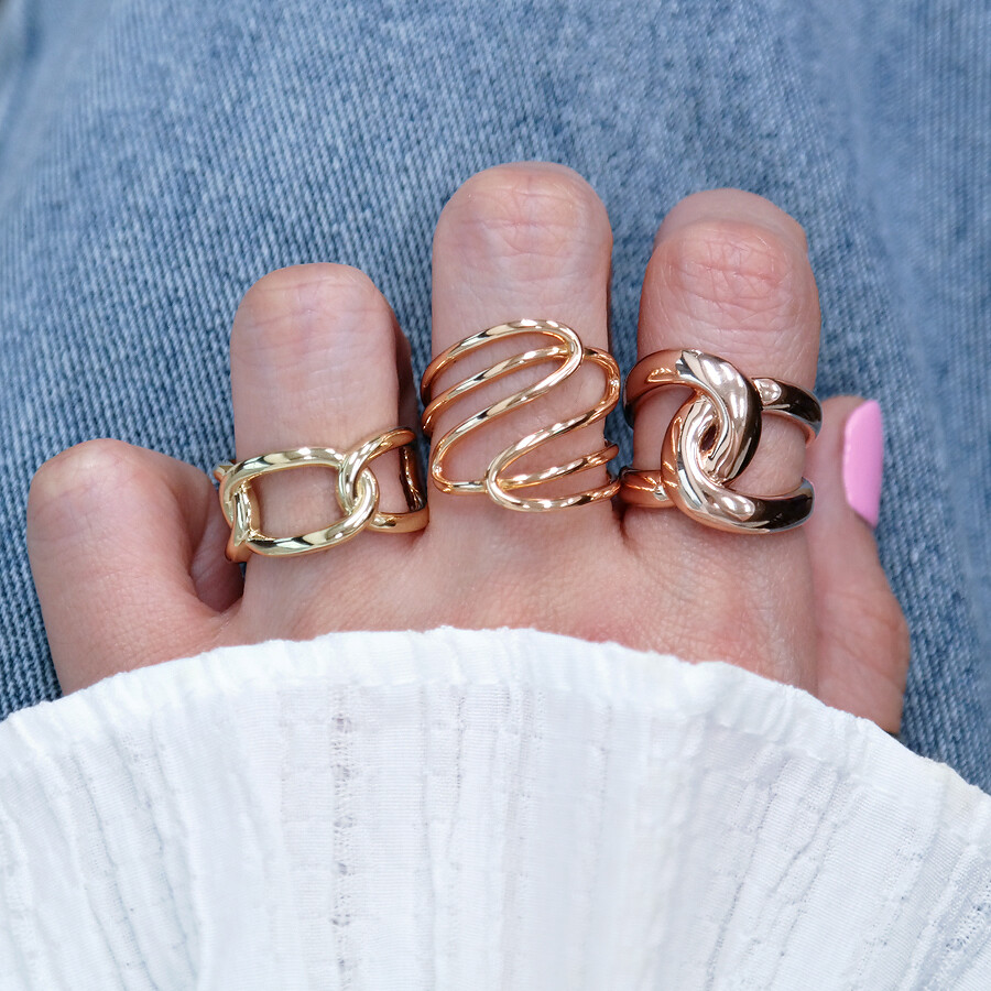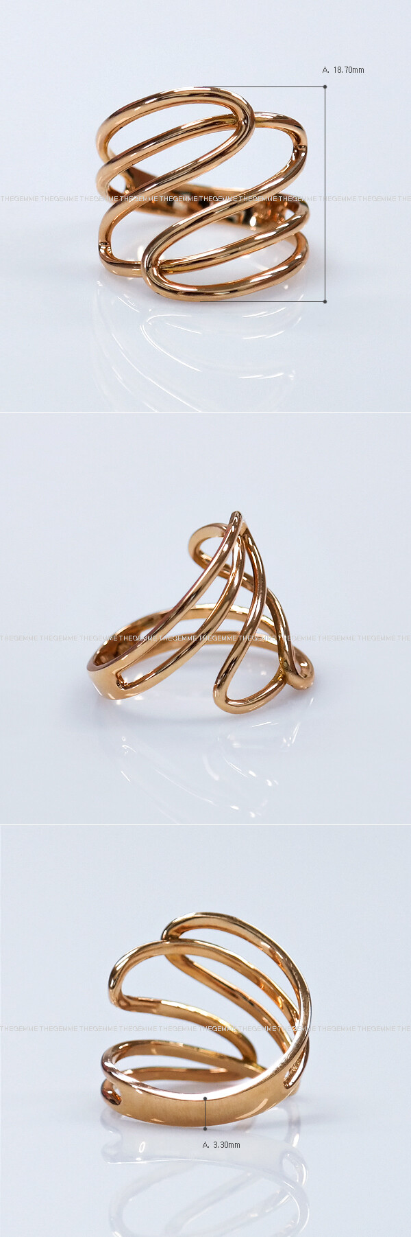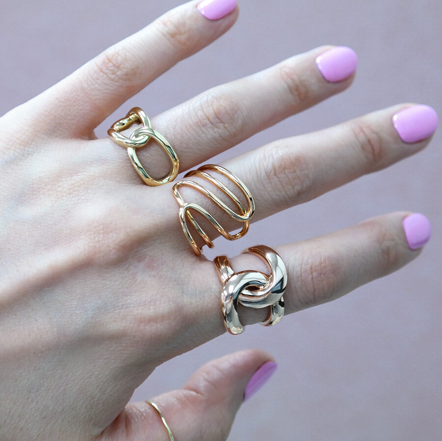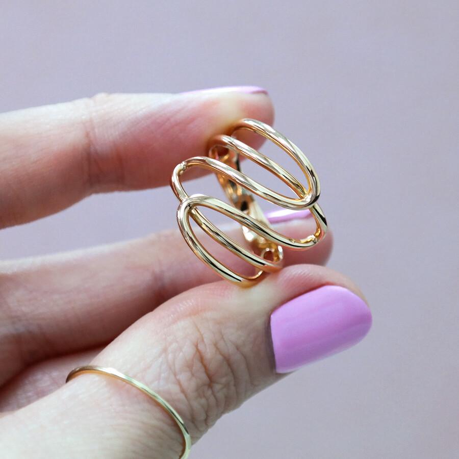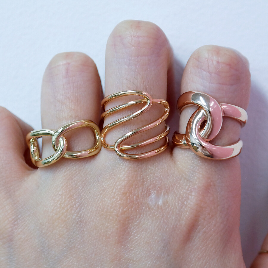 파이프 형태의 금선이 웨이브 형태로 겹쳐진 디자인의 반지입니다. 유니크한 반지를 선호하시는 분들께 추천해 드려요 :)