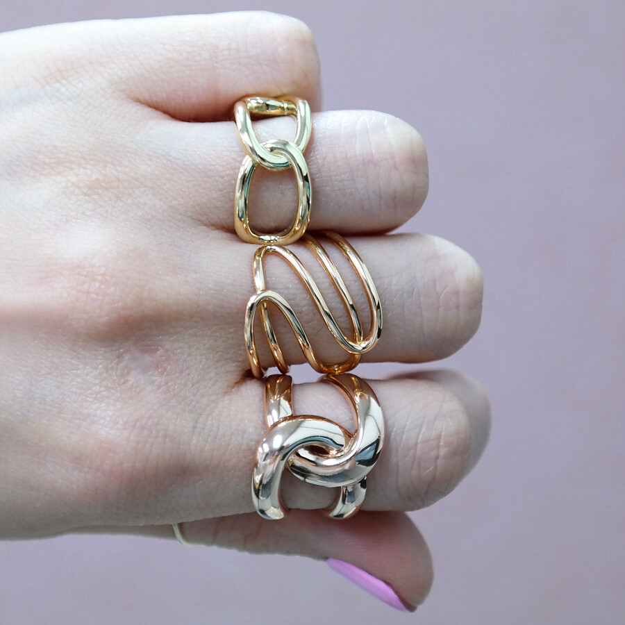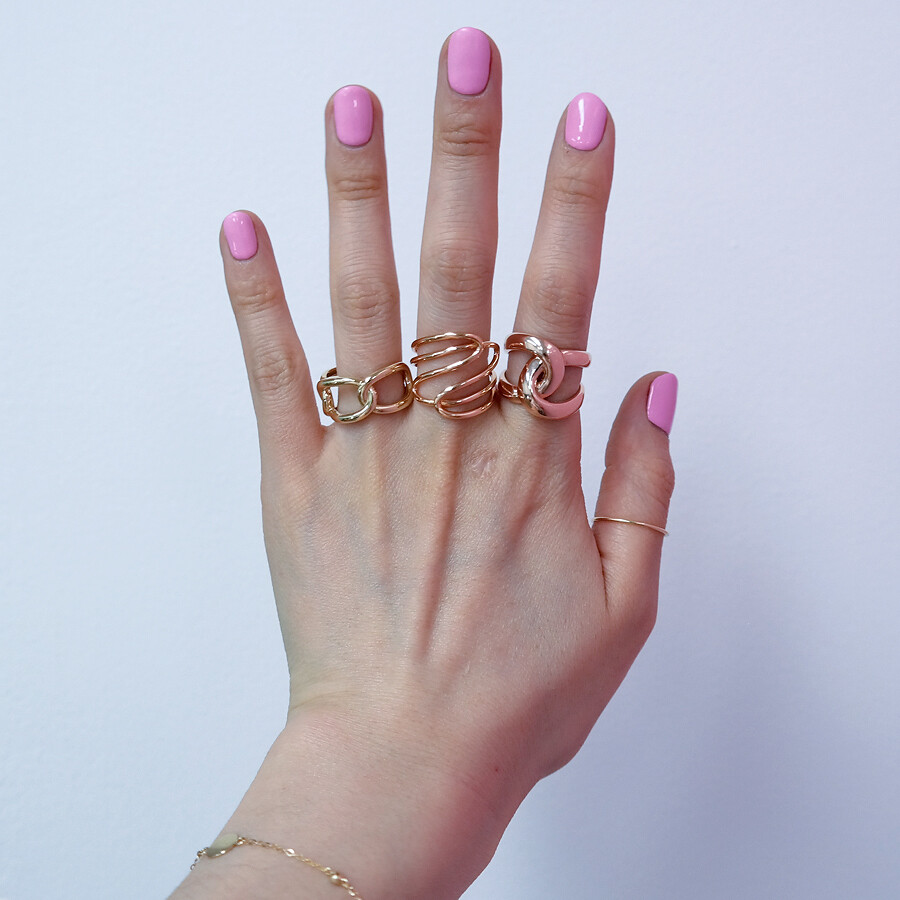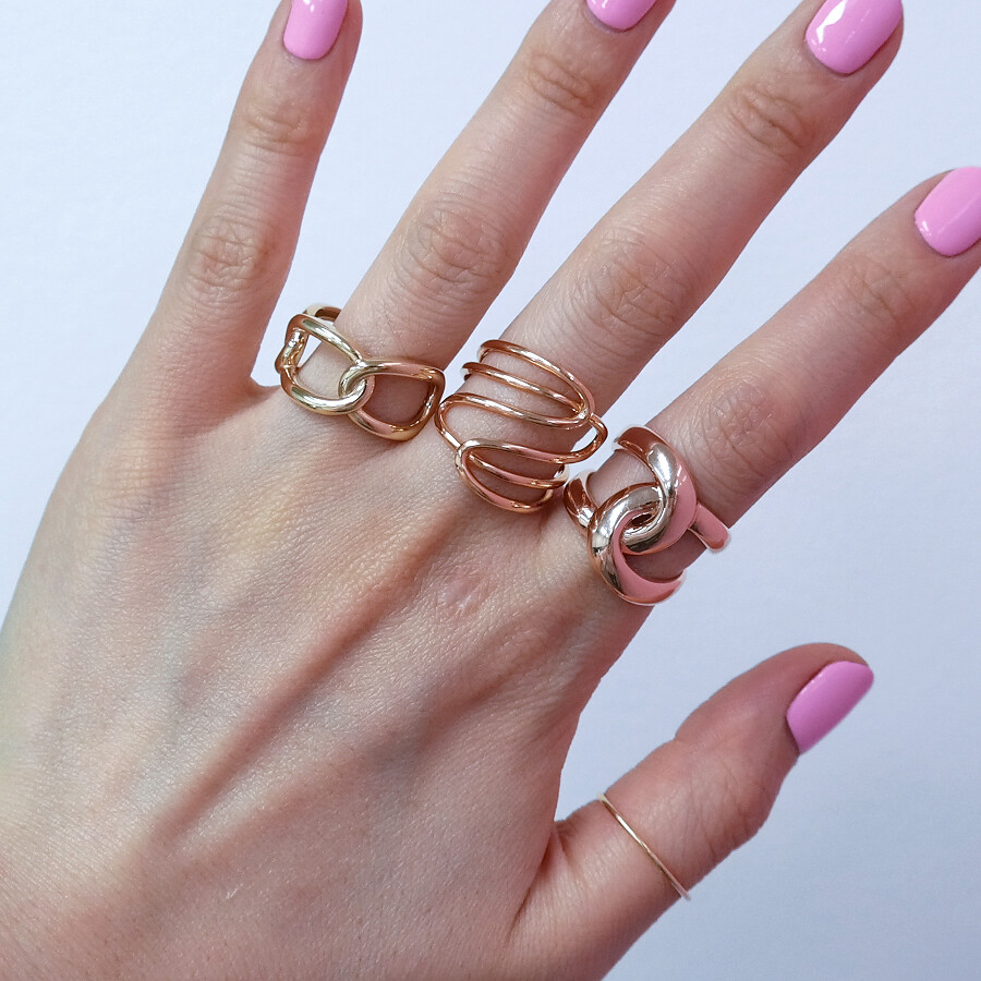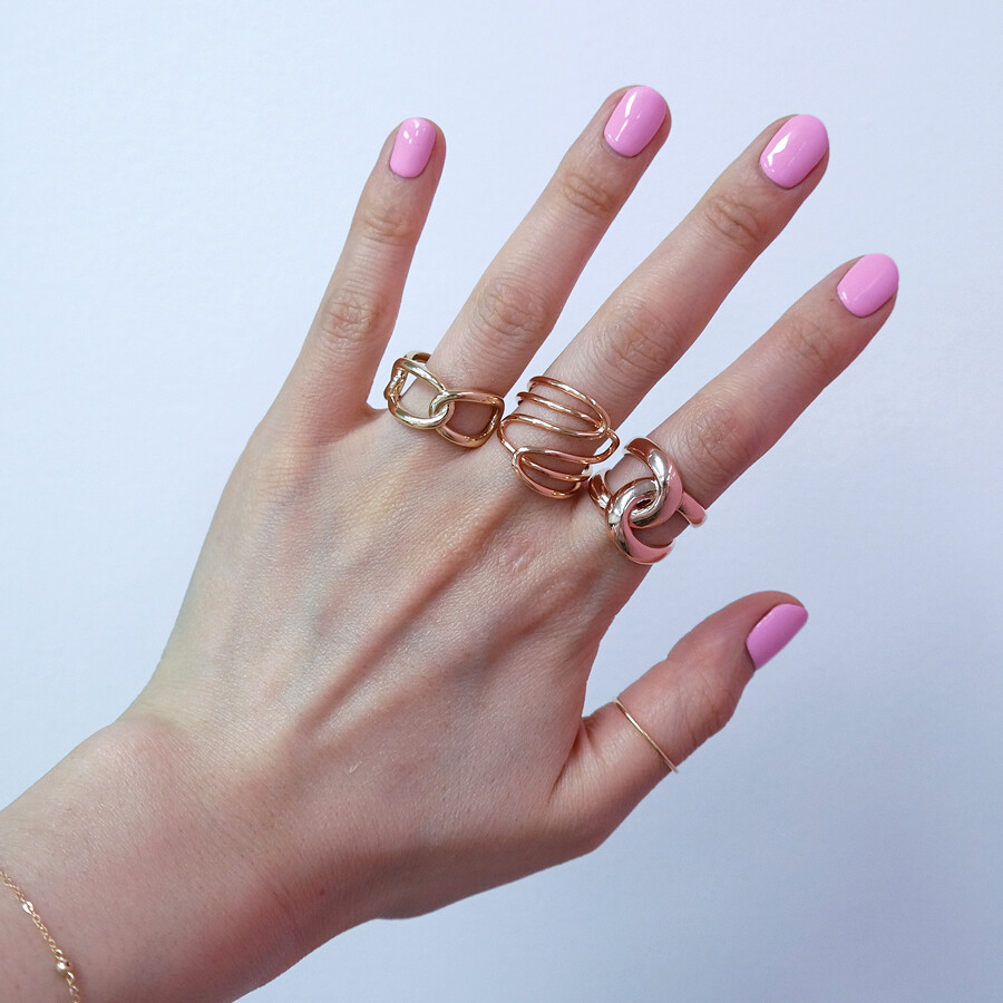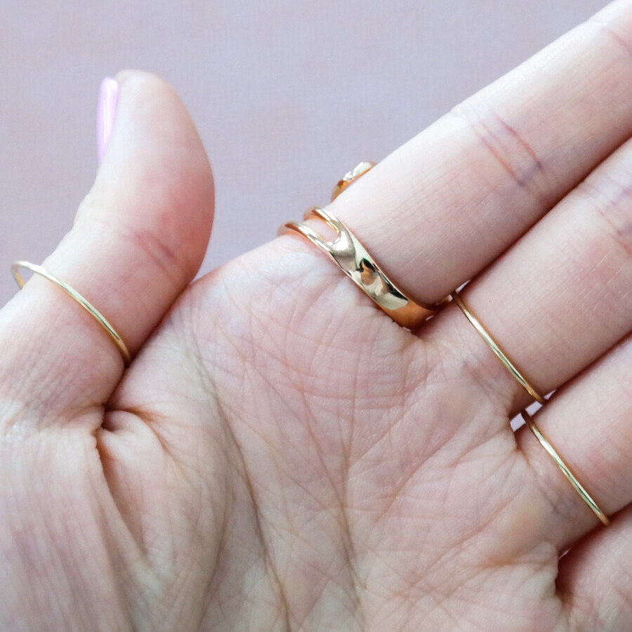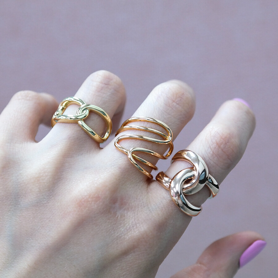 파이프 형태의 금선이 웨이브 형태로 겹쳐진 디자인의 반지입니다. 유니크한 반지를 선호하시는 분들께 추천해 드려요 :)