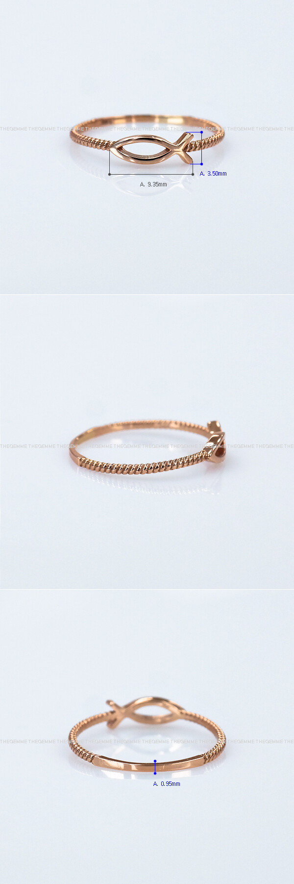 물고기 디자인의 민자 반지입니다. 밴드 부분에 꽈배기 디자인이 들어가 있어서 밋밋하지 않고 유니크한 느낌이에요. 데일리 및 레이어드 반지로 추천해 드릴게요. ♥