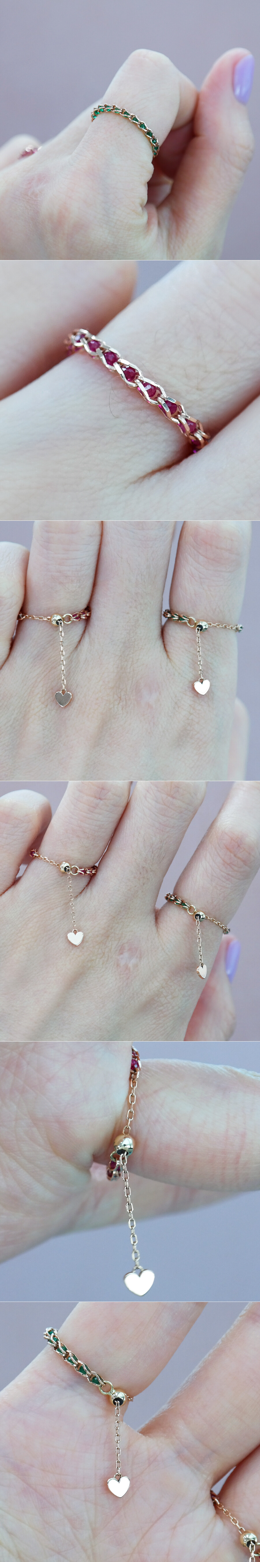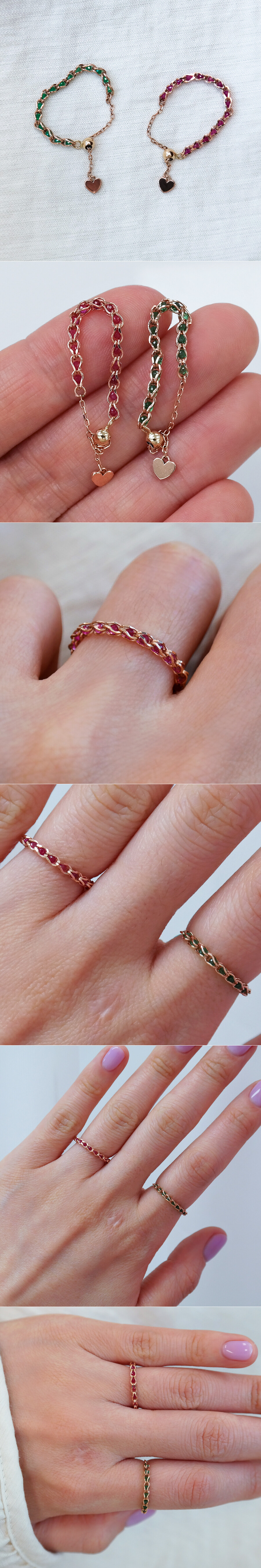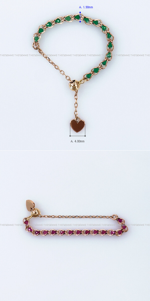 14K 볼 컷팅 루비 & 에메랄드 프리 체인 반지