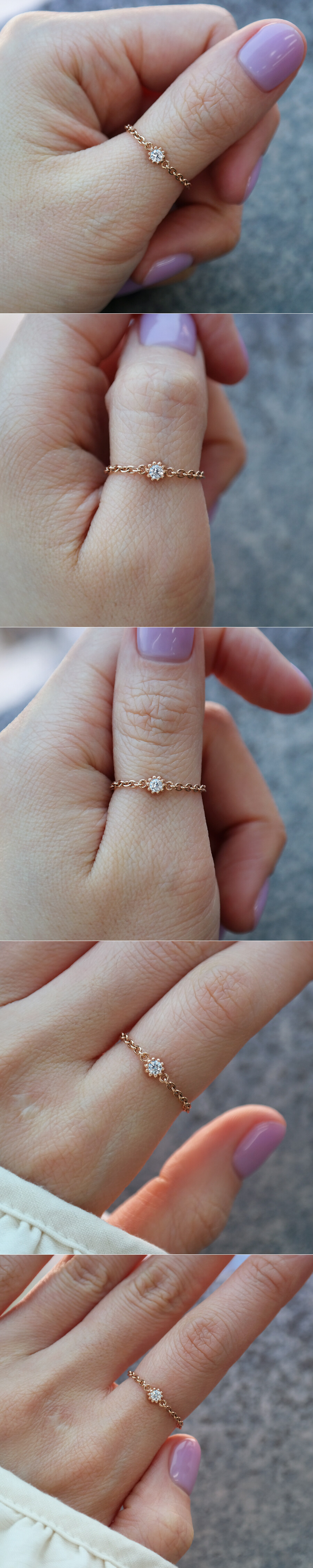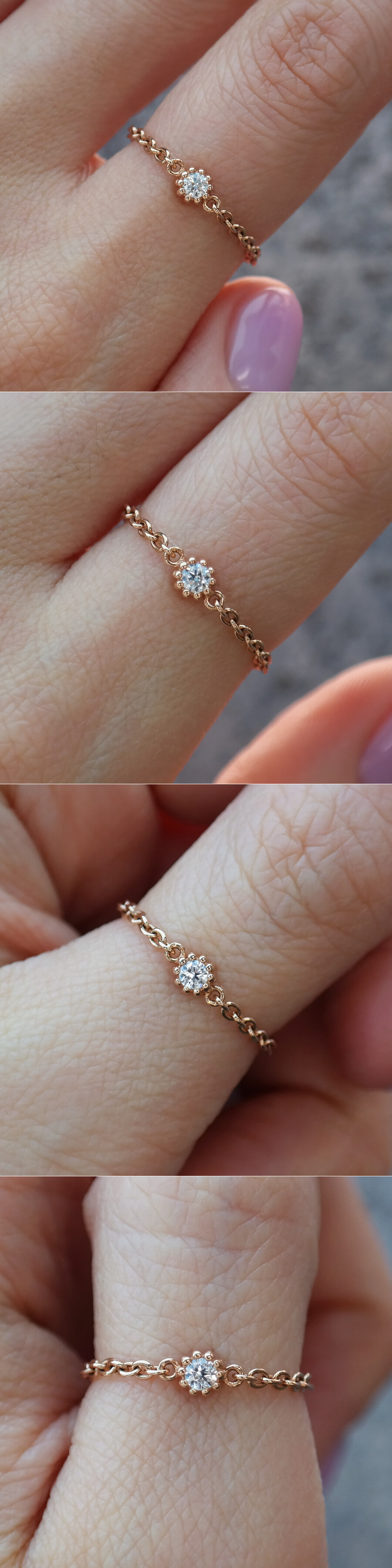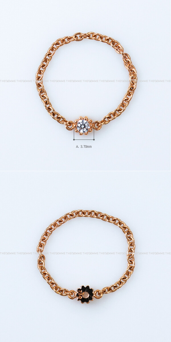 깜찍하고 귀여운 디자인의 체인 반지입니다. 약 7푼 굵기의 체인으로, 어느 정도 두께감이 있는 체인이라 안정감 있게 착용하시기 좋습니다. 데일리 및 레이어드 반지로 추천해 드릴게요. ♥