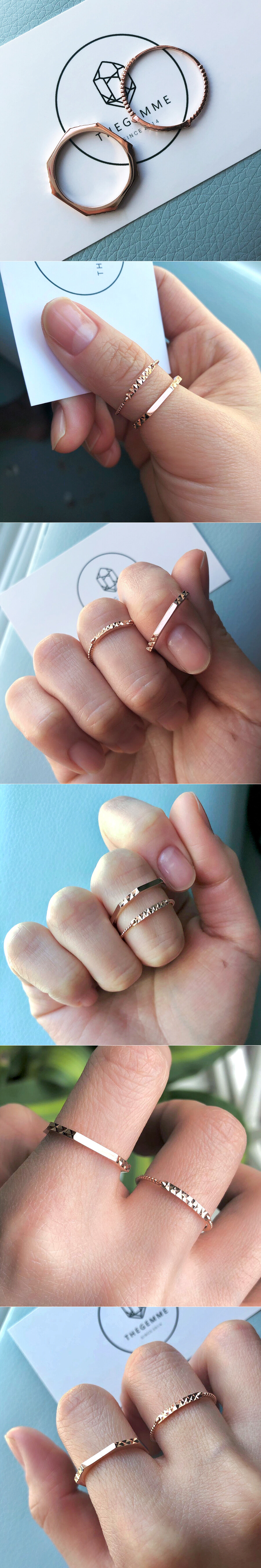 세련된 컷팅 디자인의 팔각형 반지입니다. 데일리 및 포인트 반지로 착용하시면 예뻐요 :)