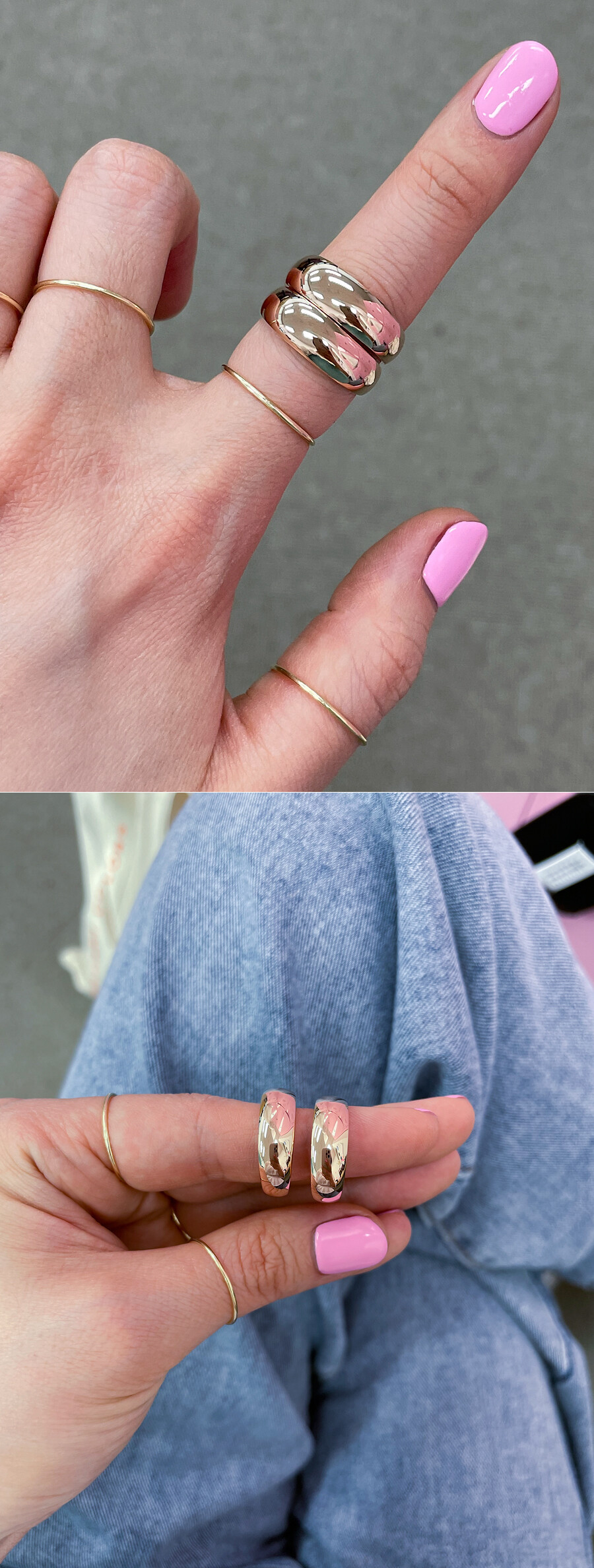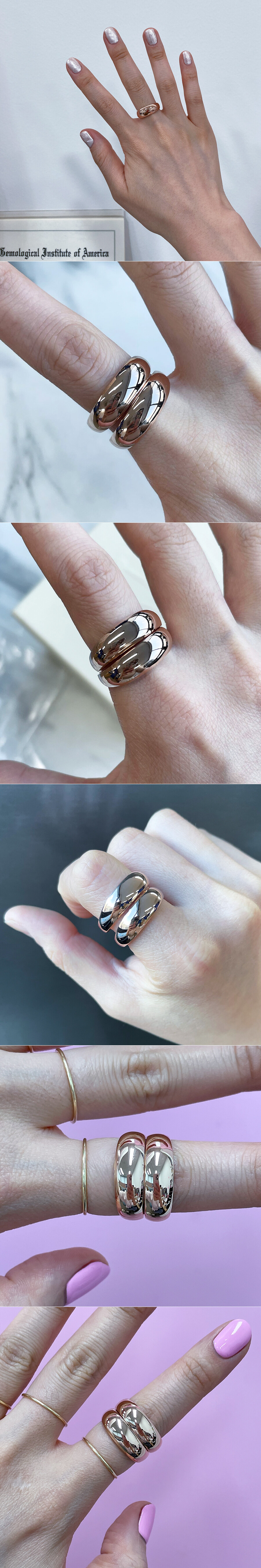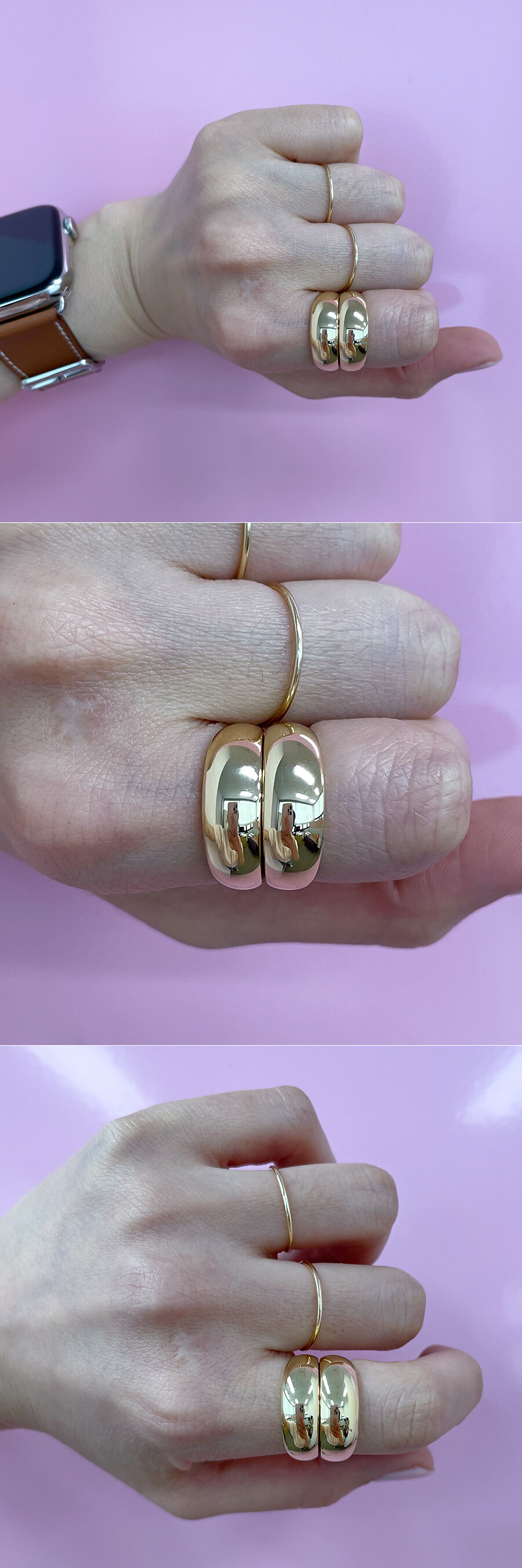 볼륨감 있는 디자인의 볼륨 반지입니다. 유행도 안타고, 가볍고, 편안하고, 중량감까지 잘빠진 착한 반지에요! ♥ 하나만 착용하셔도 예쁘지만, 쌍가락지로 나온 제품인만큼 사진처럼 두개를 함께 끼워주시면 훨씬 더 볼륨감도 있어 보이고 2배로 예쁘답니다! ※ 게시된 가격은 반지 1개 가격입니다. (쌍가락지로 끼우시고 싶으신 분들은 2개를 구매해 주셔야 합니다.)