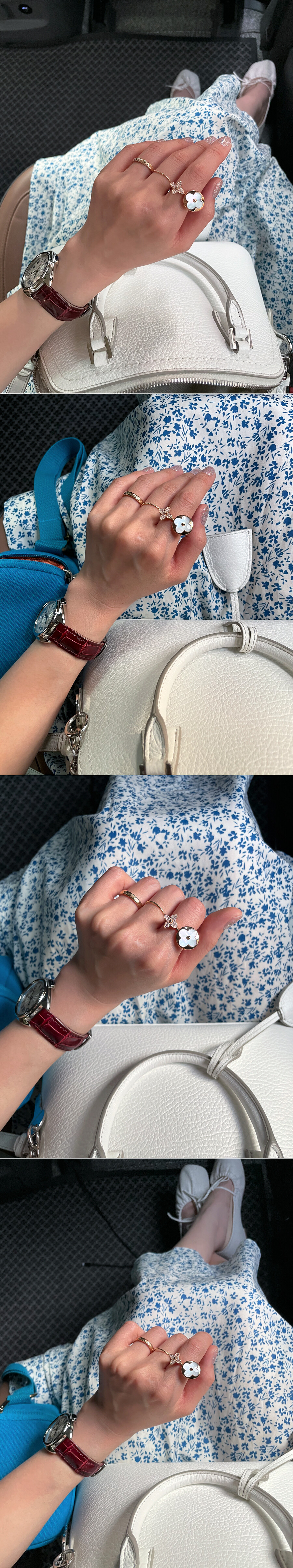 ↑ 트윈 화이트 자개 크로버 반지 & 라운드 화이트 자개 크로버 반지