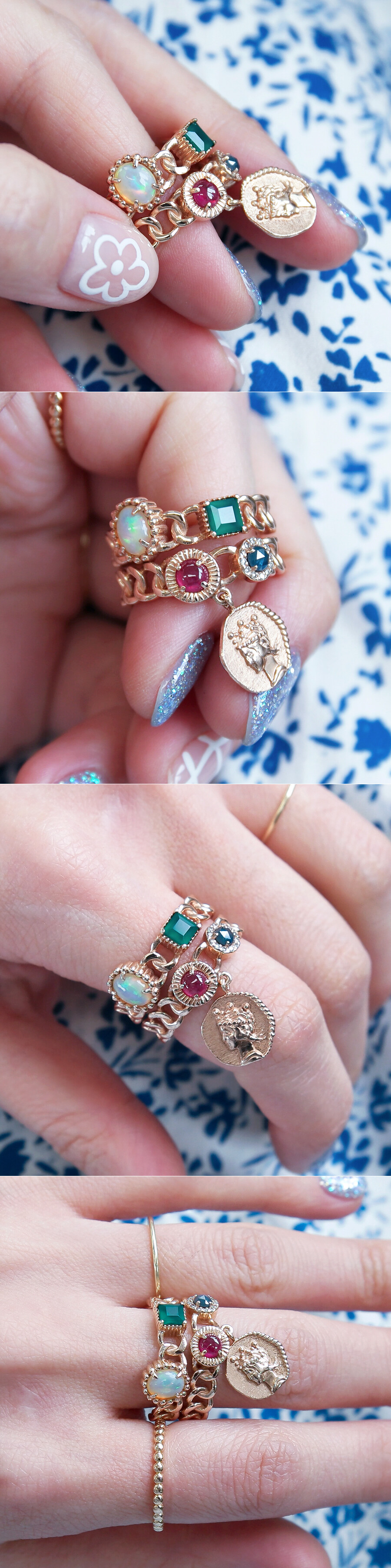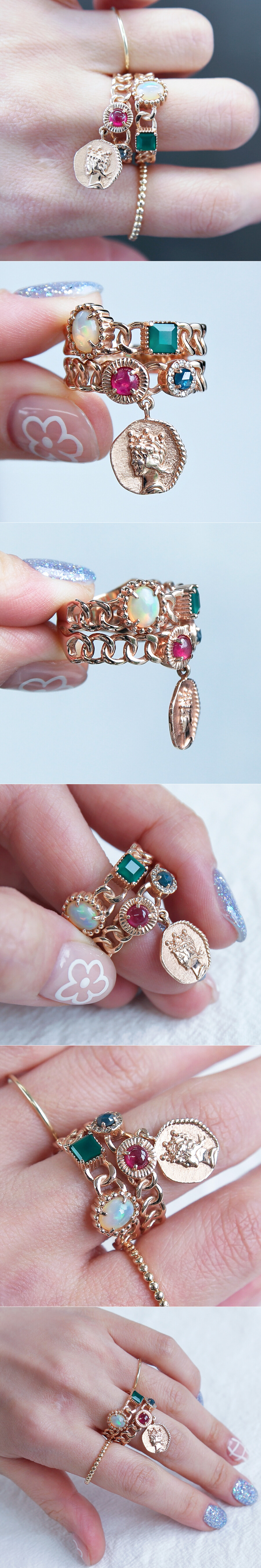 미드나잇 칵테일 코인 딸랑이 체인 반지 (루비 사파이어 오팔 오닉스)
