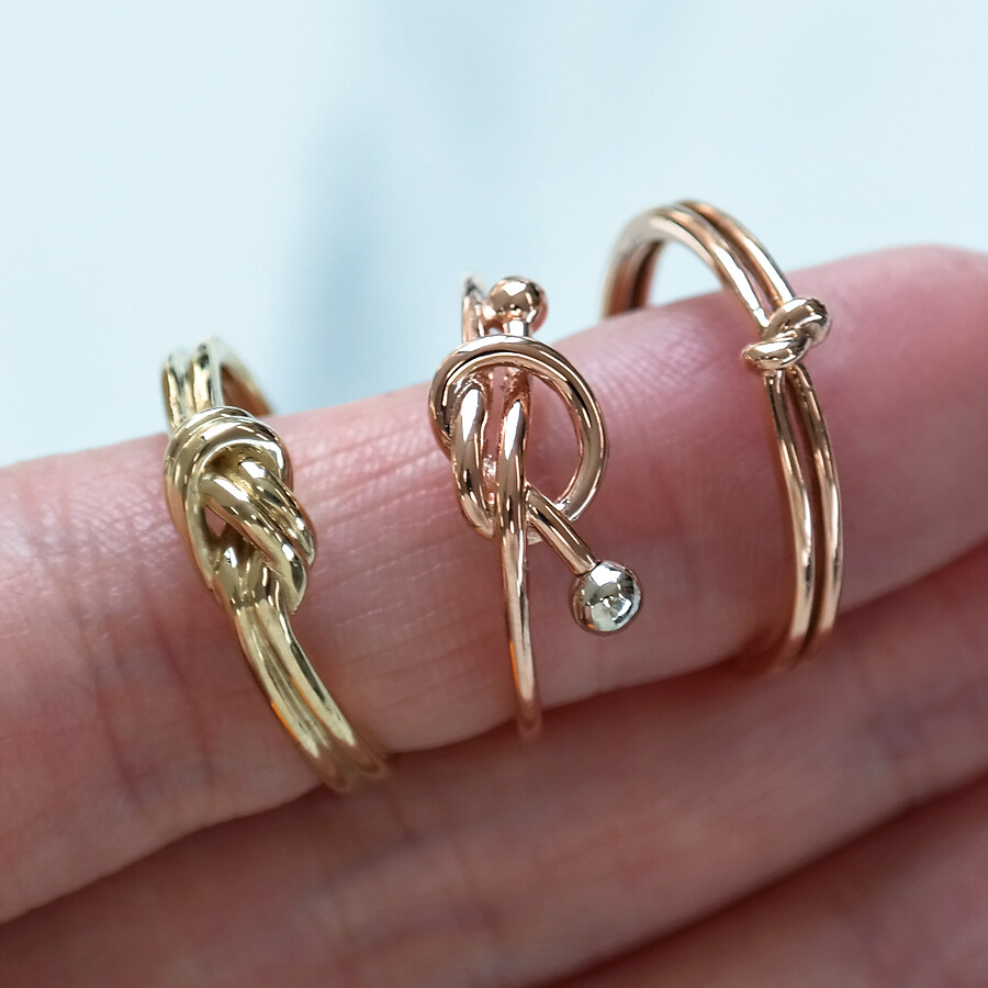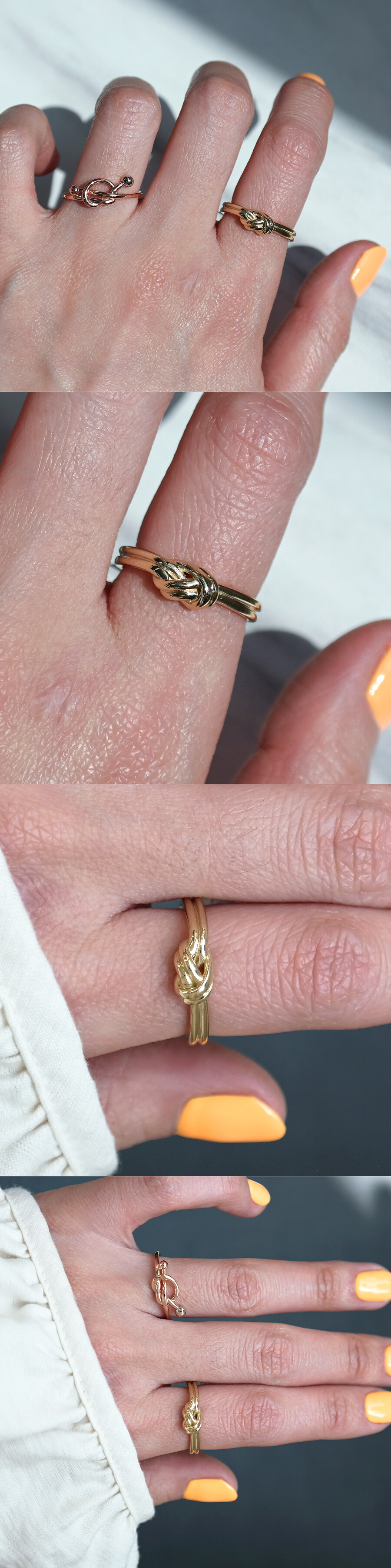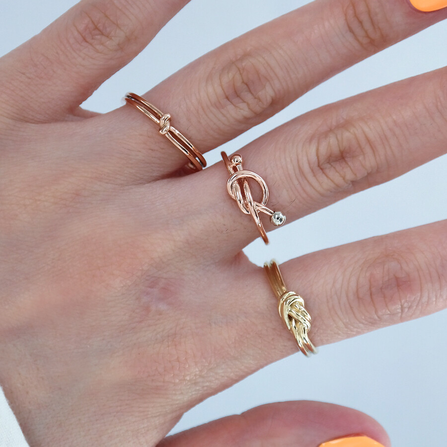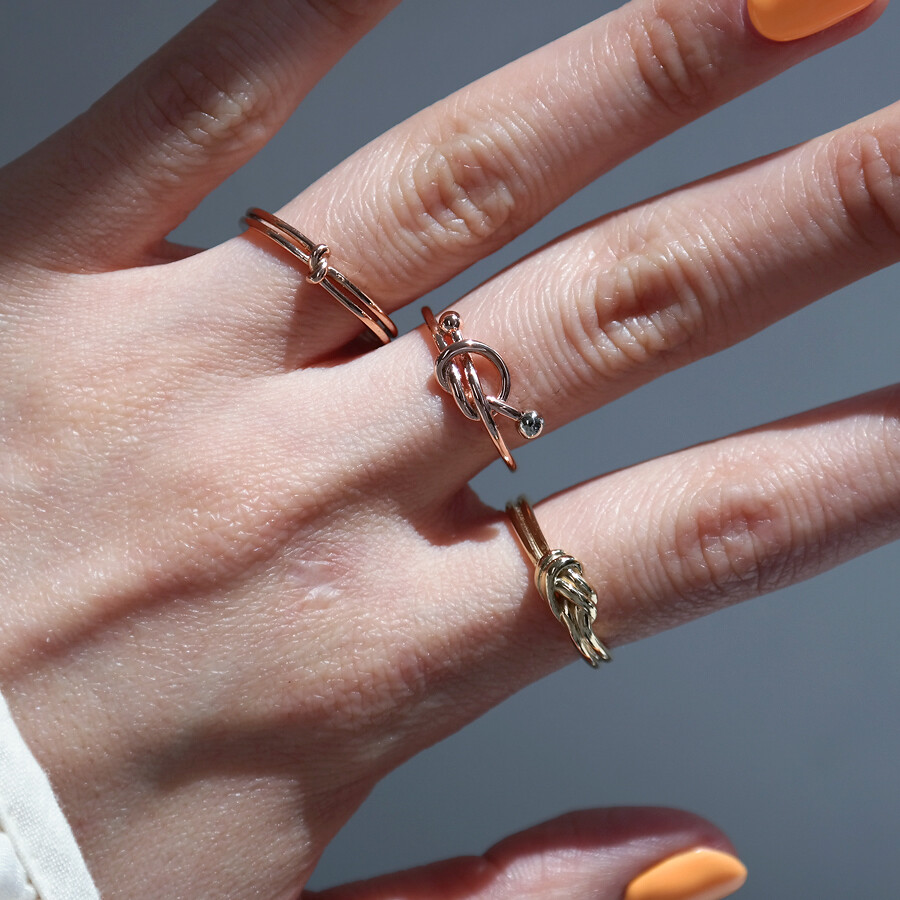 매듭 스타일의 꼬임 반지입니다. 볼드한 느낌의 두 줄 디자인으로 안정감 있게 착용하시기 좋아요 :)