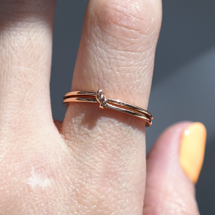 작은 매듭 포인트 디자인의 두 줄 반지입니다. 심플하면서 깔끔한 스타일로 데일리 및 포인트 반지로 착용하시기 좋아요 :)
