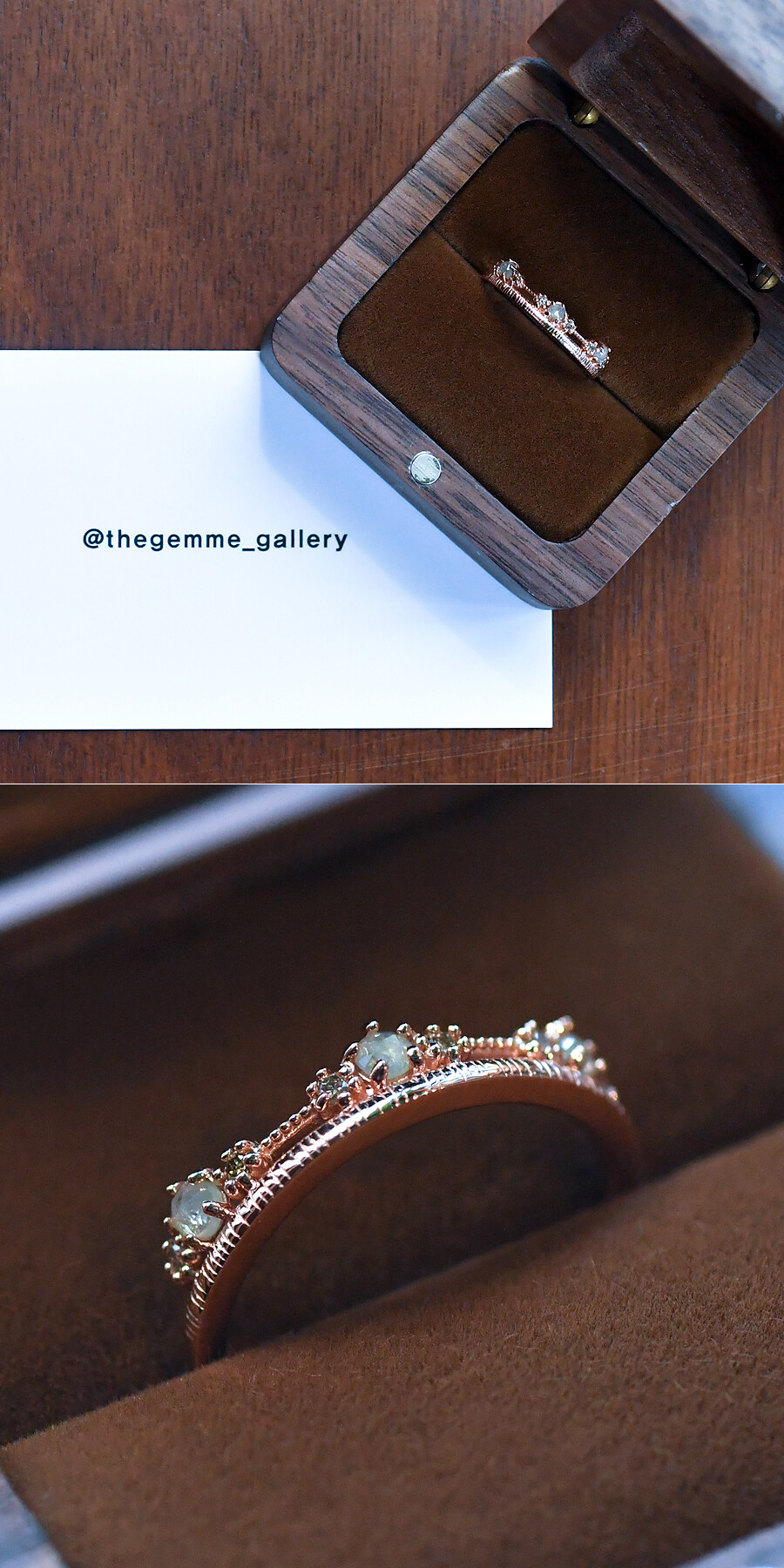 청아한 빛깔의 그레이 러프 다이아몬드가 메인으로 세팅된 다이아몬드 반지입니다. 🤍 서브 스톤으로는 브라운 계열의 코냑 다이아몬드가 함께 세팅되었어요. 티아라 디자인의 반지로 고급스러운 장식과 함께 그레인 밴드 스타일로 여성스러운 매력을 뽐내는 아이랍니다. 착용 시 그립감도 좋아서 안정감 있게 착용하시기 좋아요. 고급스러운 디자인의 데일리 스톤 반지로 추천해 드릴게요 :) ❤️