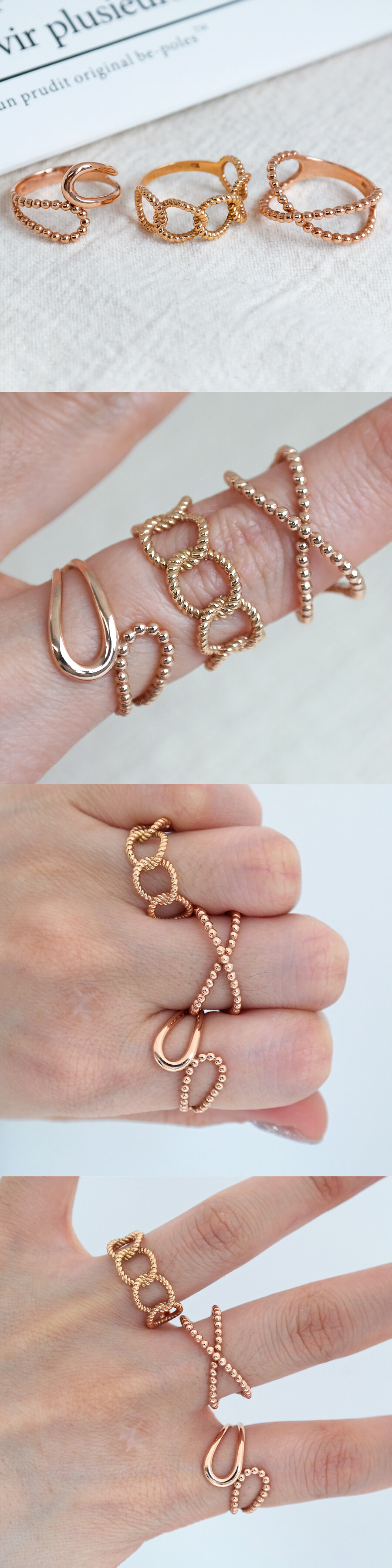 세련된 느낌의 트위스트 디자인 반지입니다. 편안하게 착용하실 데일리 및 포인트 반지로 좋아요 :)