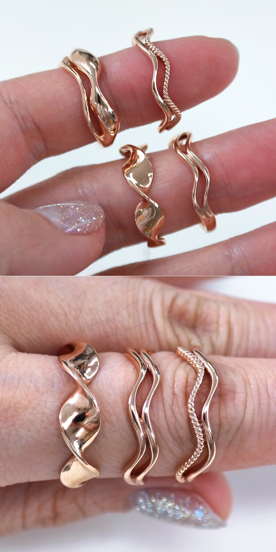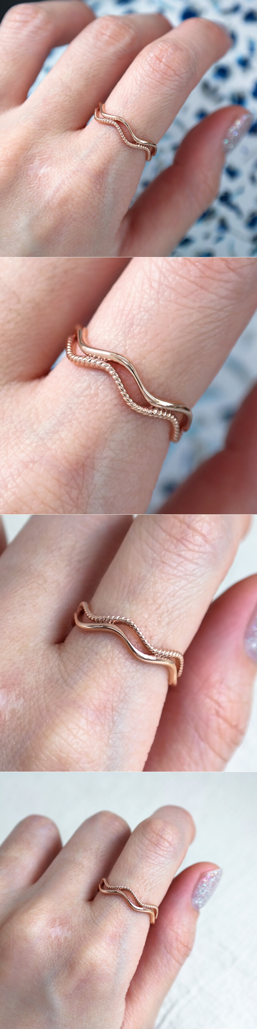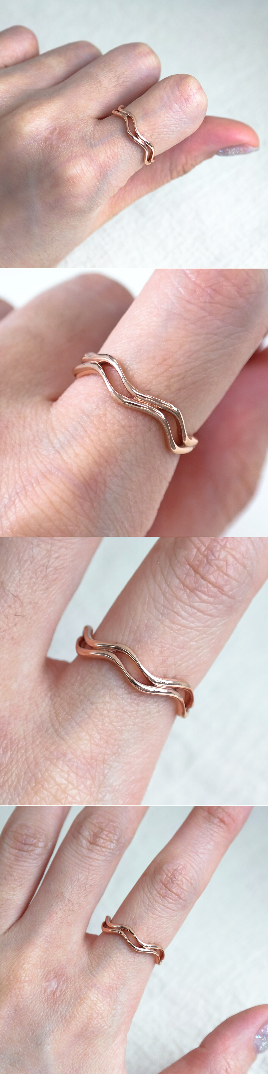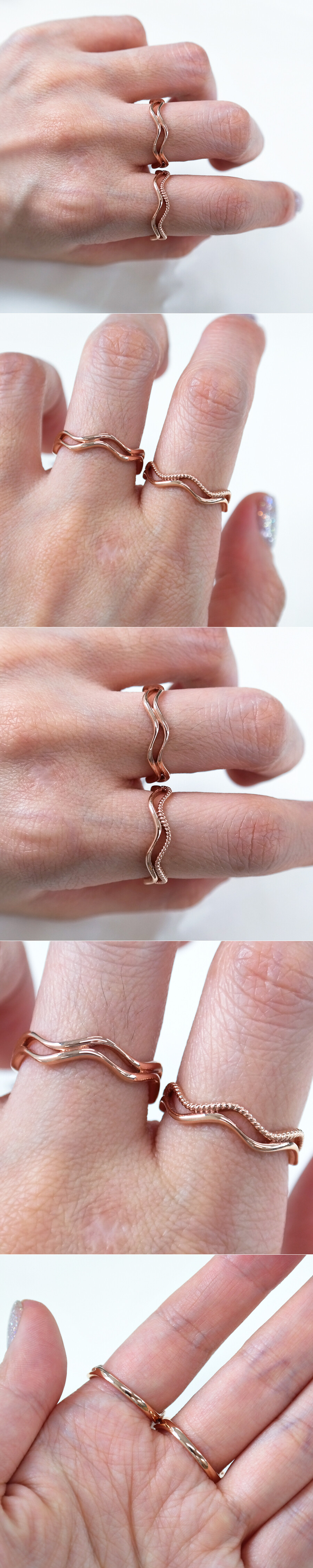 웨이브 디자인의 두 줄 반지입니다. 디자인이 살짝 다른 두 가지 타입이 있구요, 각각 중량이 조금씩 달라서 약간의 가격차이가 있습니다. 자세한 디테일은 이미지에서 확인해 주세요. 그립감도 좋고 편안한 스타일로 데일리 및 포인트 반지로 추천해 드릴게요. 🩷 * 기본 설정가는 NO.1 (로프&민자) 디자인으로 되어있습니다. NO.1 (로프&민자) & NO.2 (민자) 의 가격이 각각 다르므로 자세한 가격은 옵션에서 디자인 및 함량 & 사이즈를 선택하셔서 확인해 주세요.